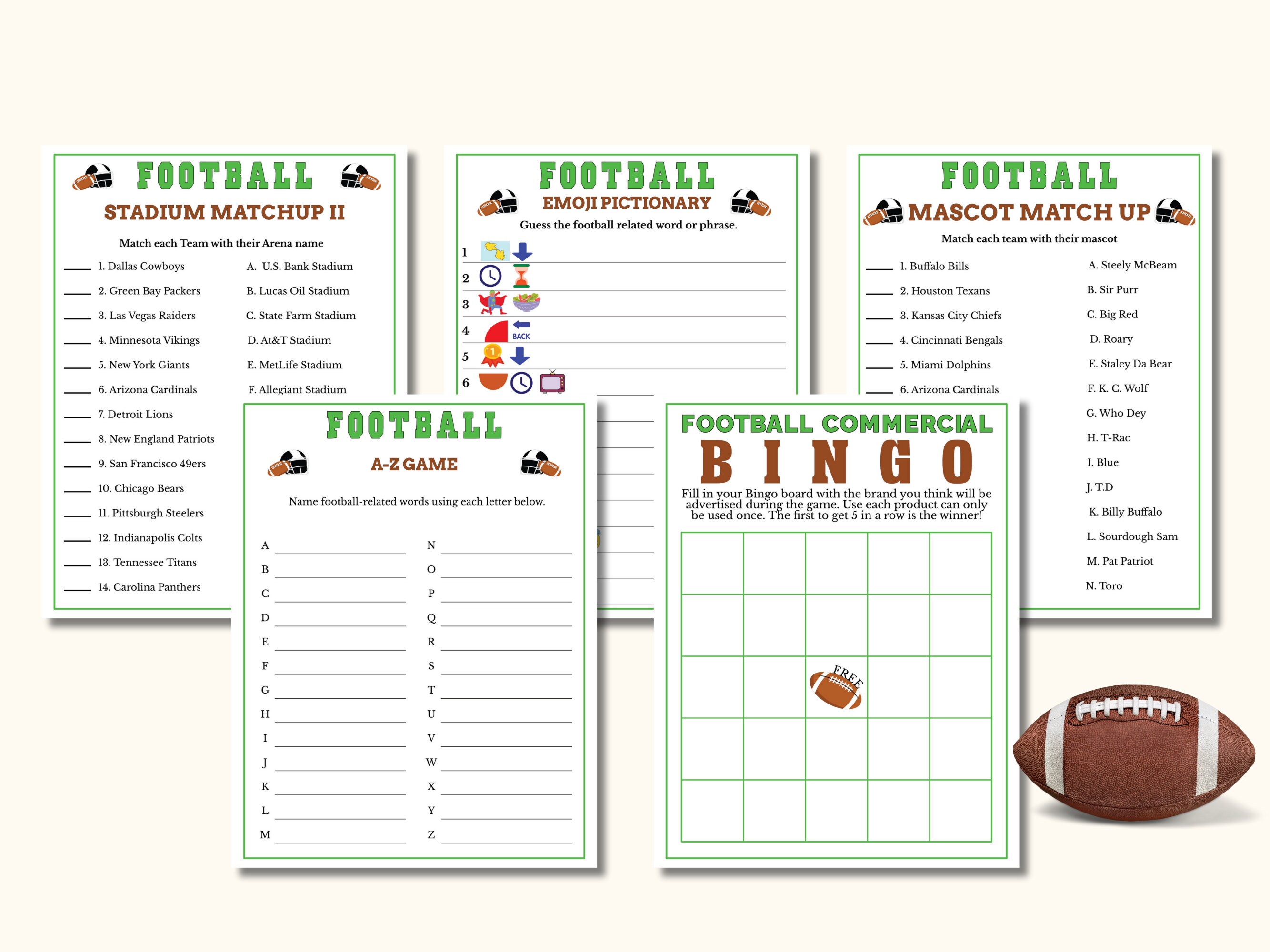 Football 10 Game BUNDLE Ten Professional Football Party Games Pack