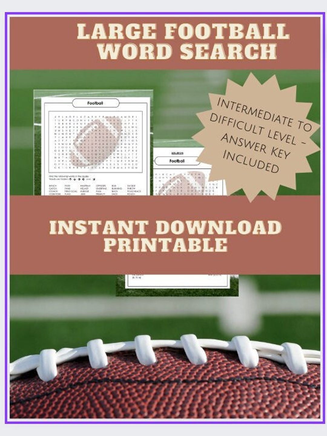 Large 48 Wordfootball Word Search Game Instant Download Football Party