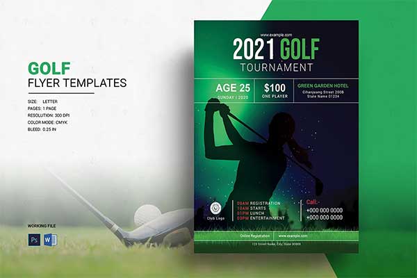Golf Flyer Template in Pages Publisher InDesign Illustrator Word