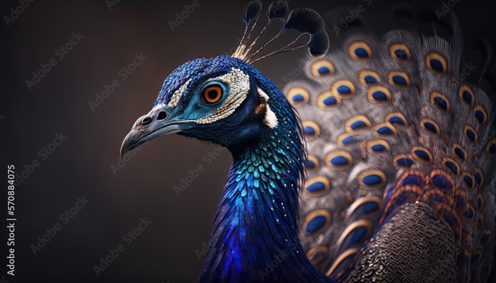 Premium AI Image Portrait of beautiful peacock with feathers on a