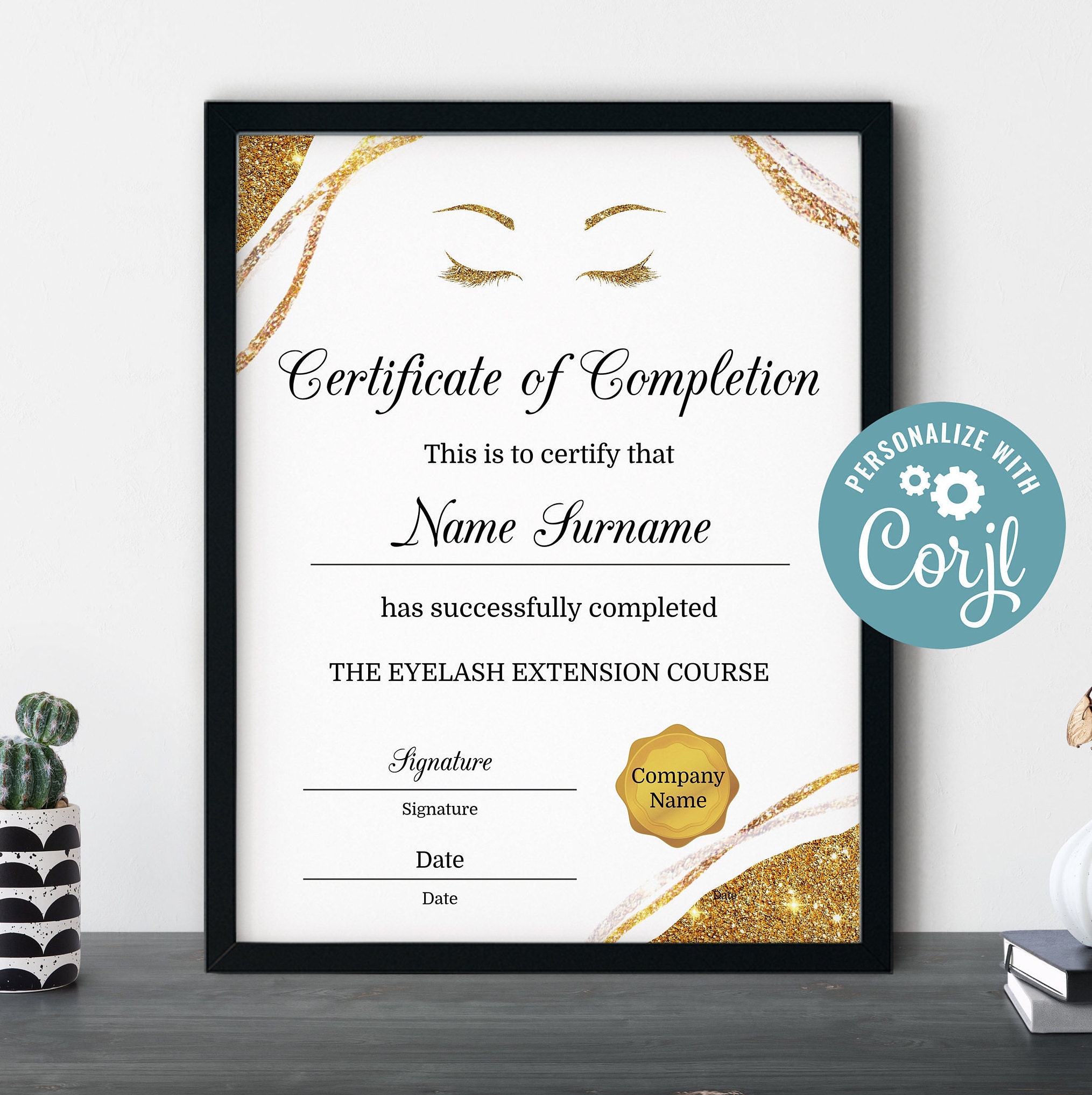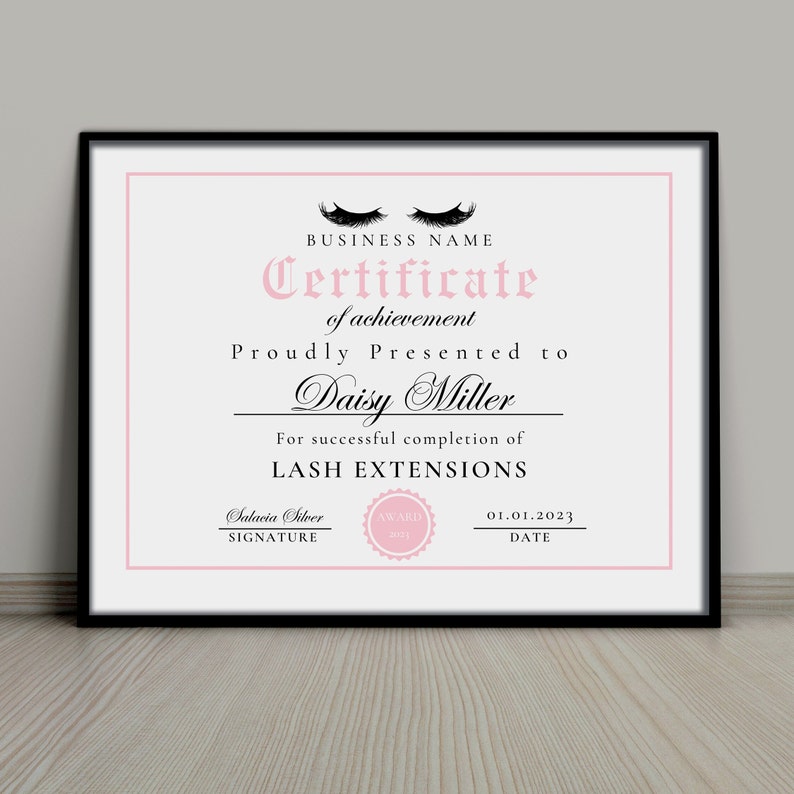 Lash Extension Certificate of Completion Editable Lash Artist