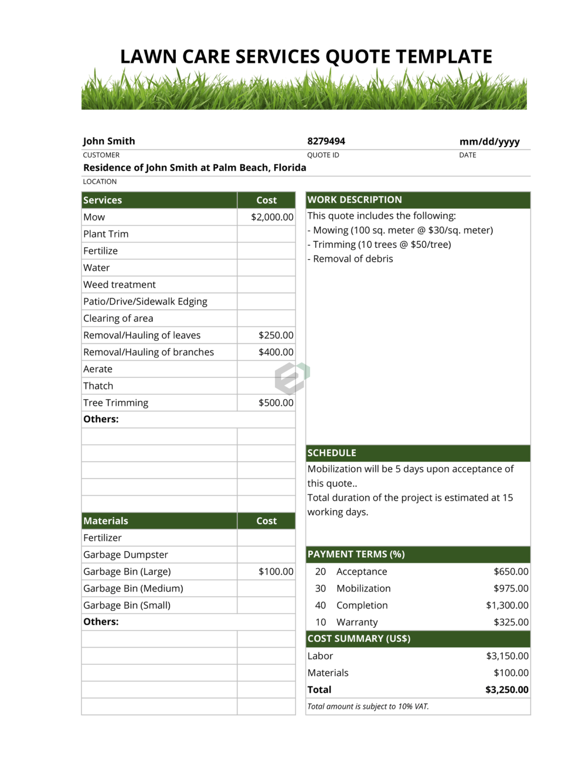 Care Estimate Template Lawn Mowing Quote Template Lawn Maintenance