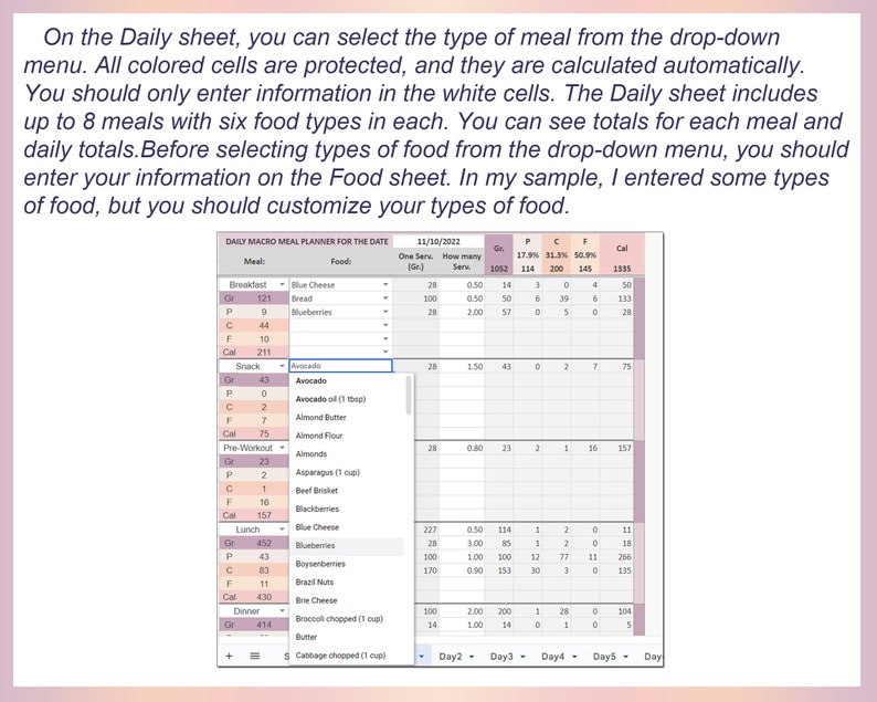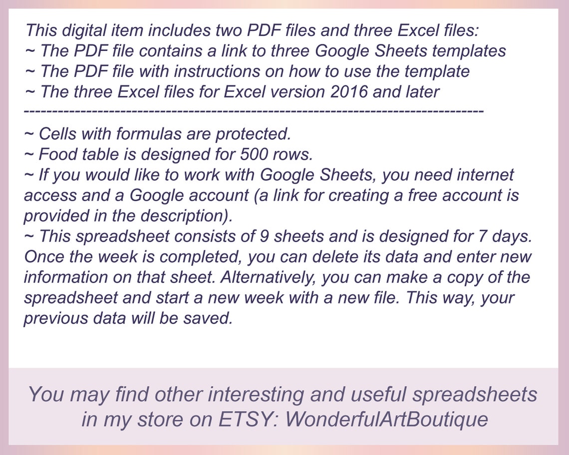 Macro Meal Planner for Excel and Googlesheets Fully Editable Etsy