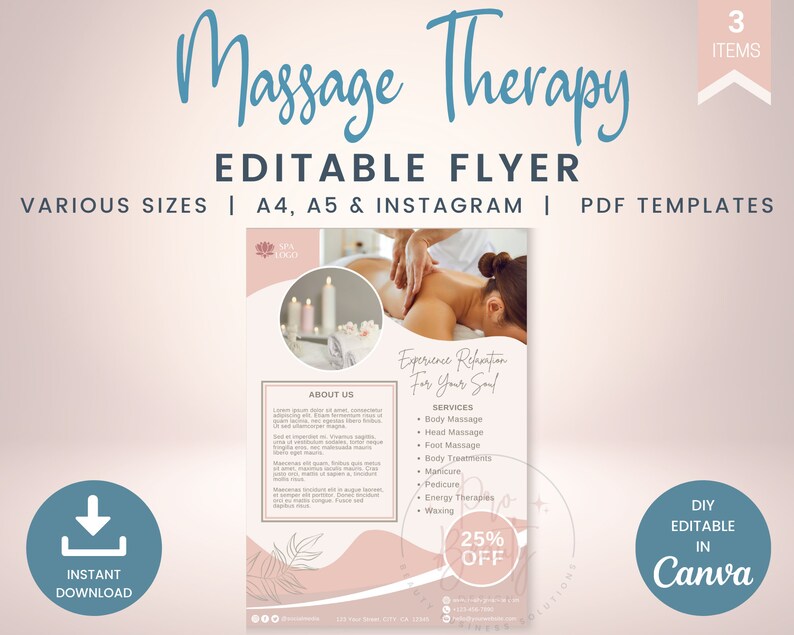 Editable Massage Therapy Flyer Pack Printable Massage Flyers A4 and A5