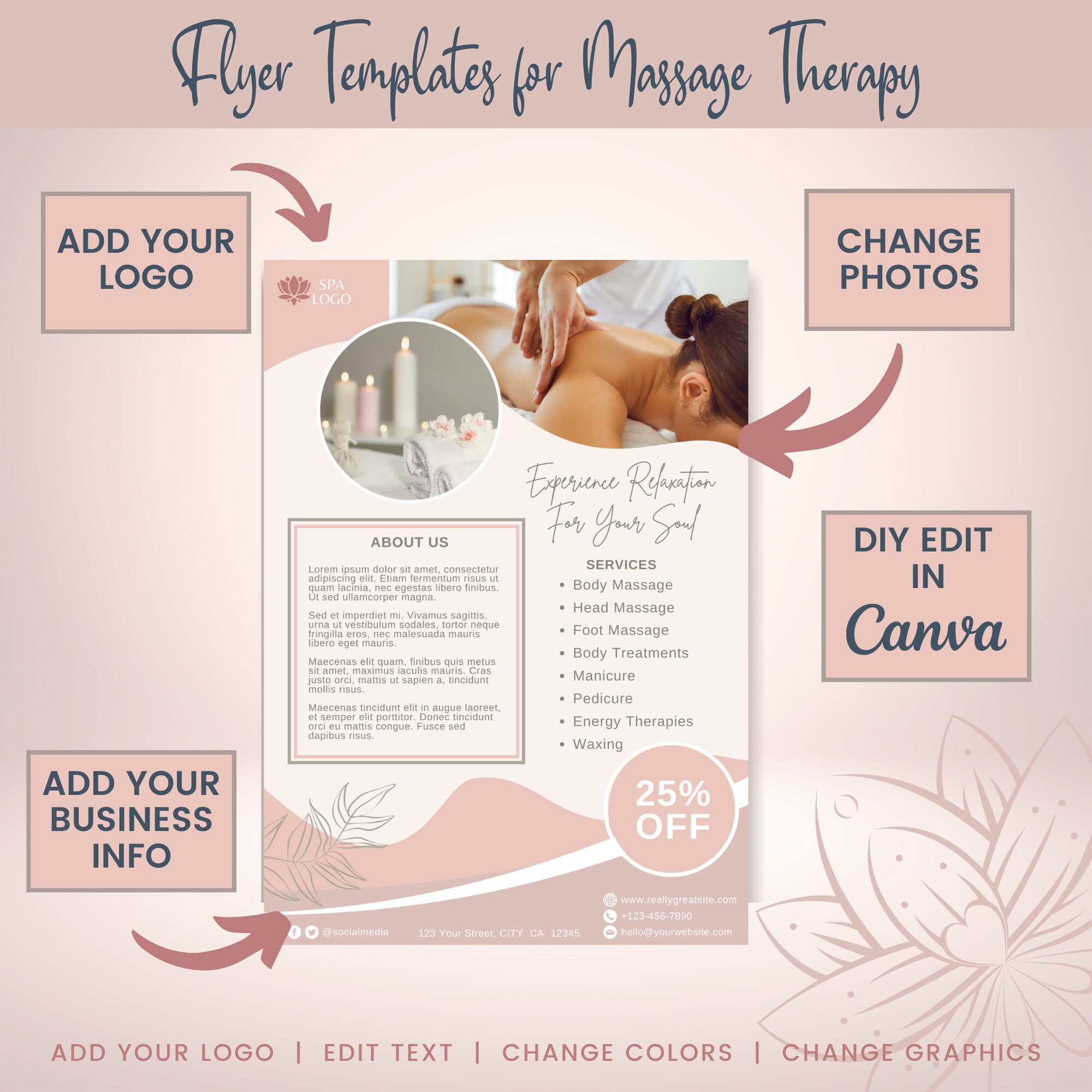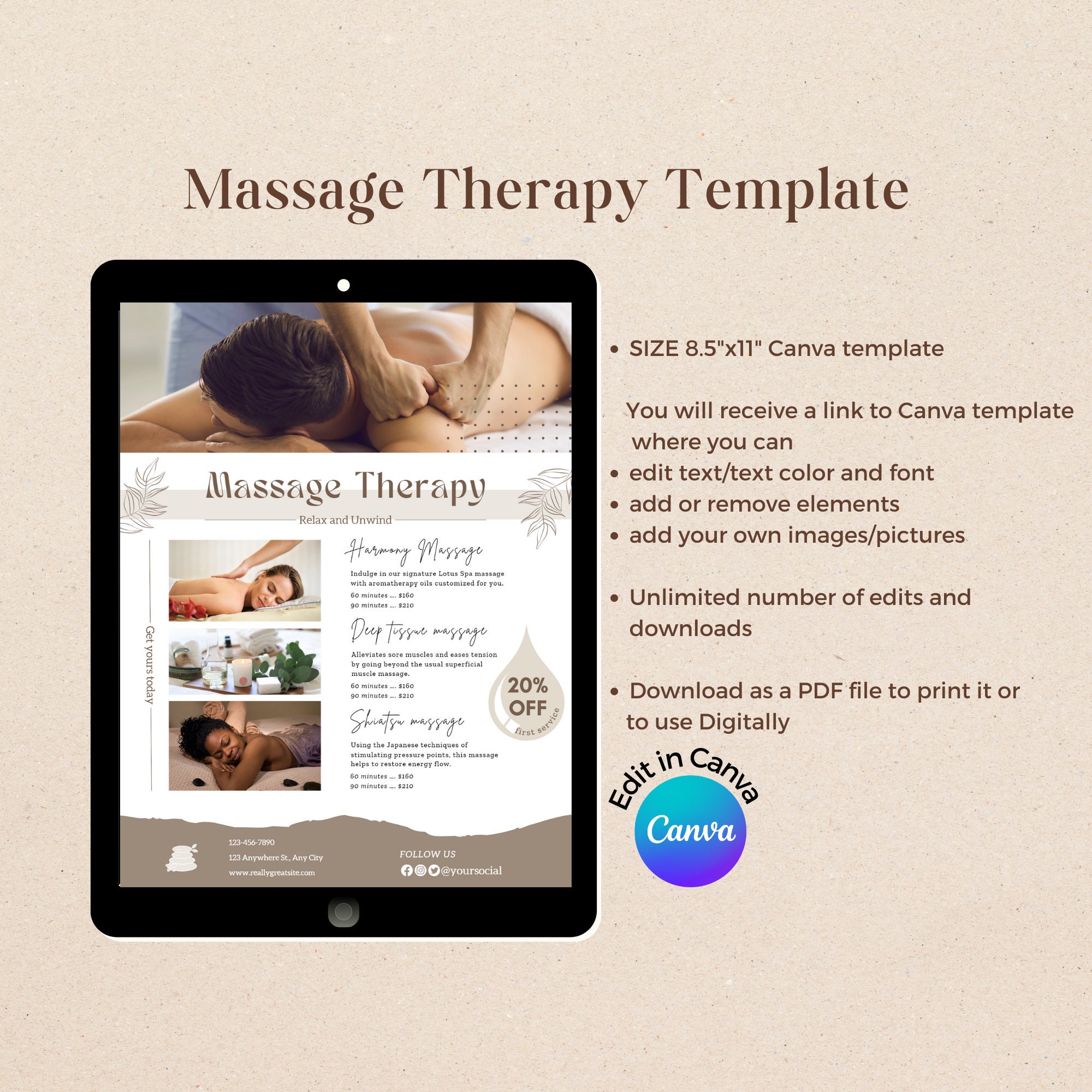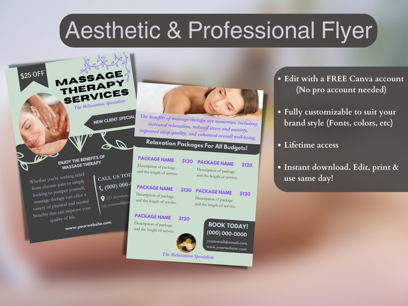 Massage Therapy Printable Flyer Template Editable Massage Etsy