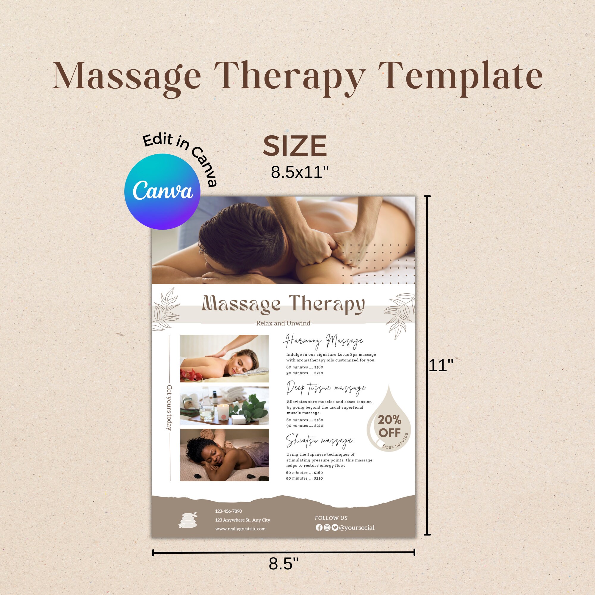 Massage Therapy Canva Template Flyer Massagist Business Flyer 8 5 X 11