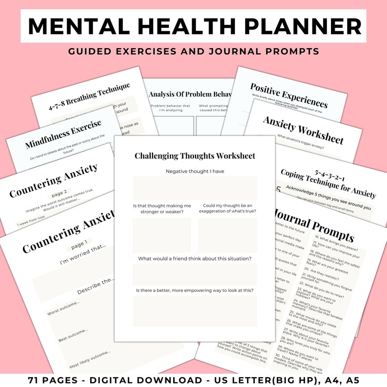 Mental Health Tracker Self Help Planner Health and Fitness Planner