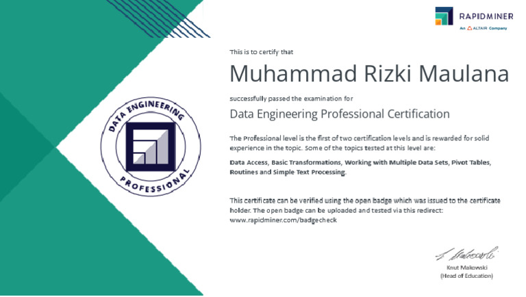 Sertifikat Rapidminer PDF