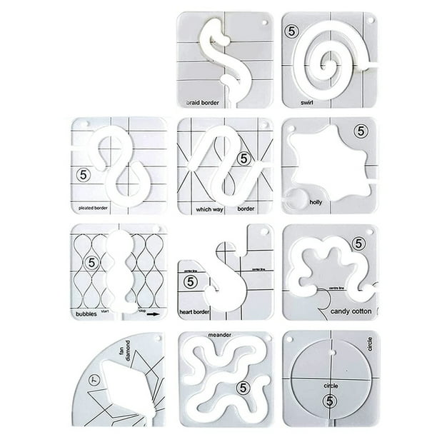 11PCS Free Motion Quilting Template Set Sewing Ruler Clear Acrylic