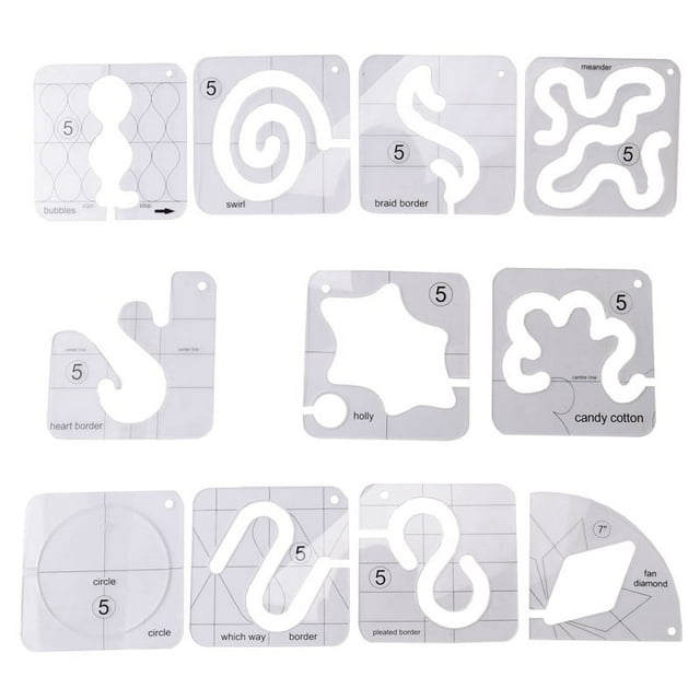 11 Piece Free Motion Quilting Template Set for Domestic Sewing Machines