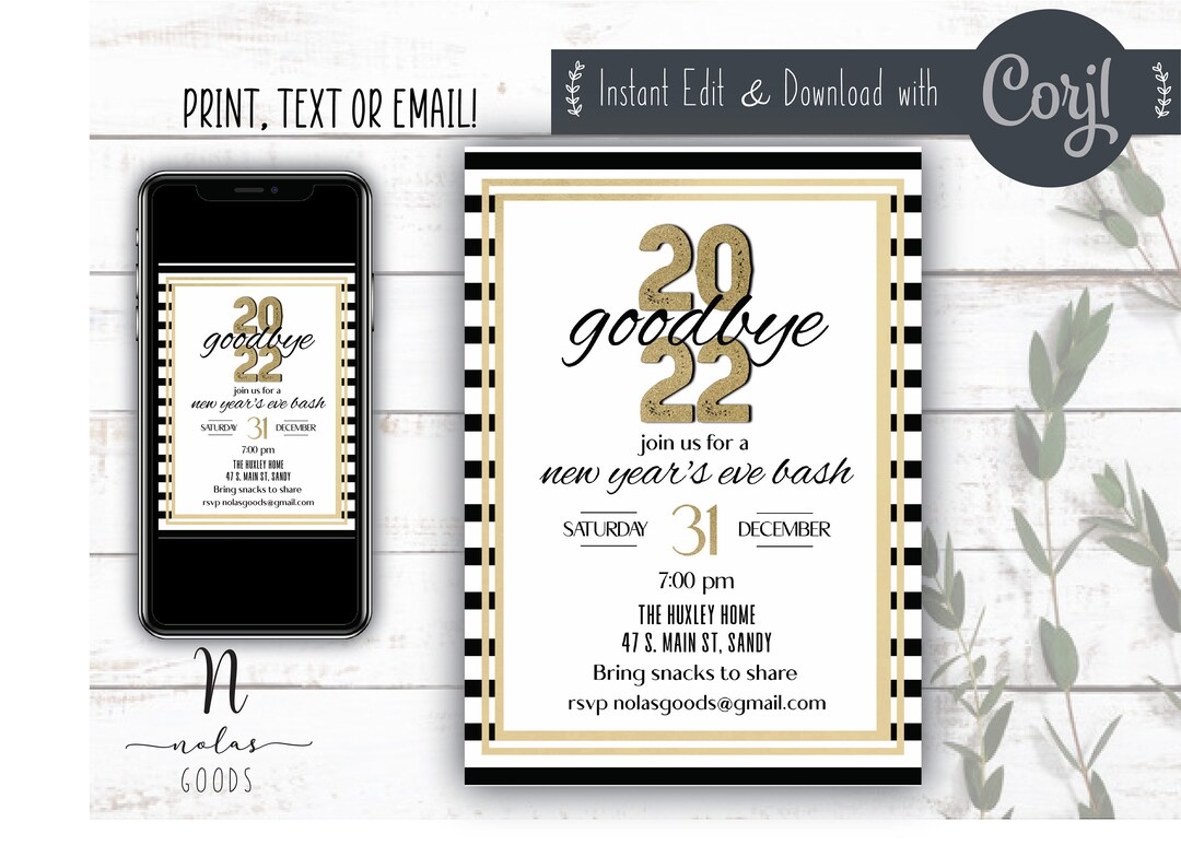 New Years Invitation Template Digital New Years Eve Invite Etsy