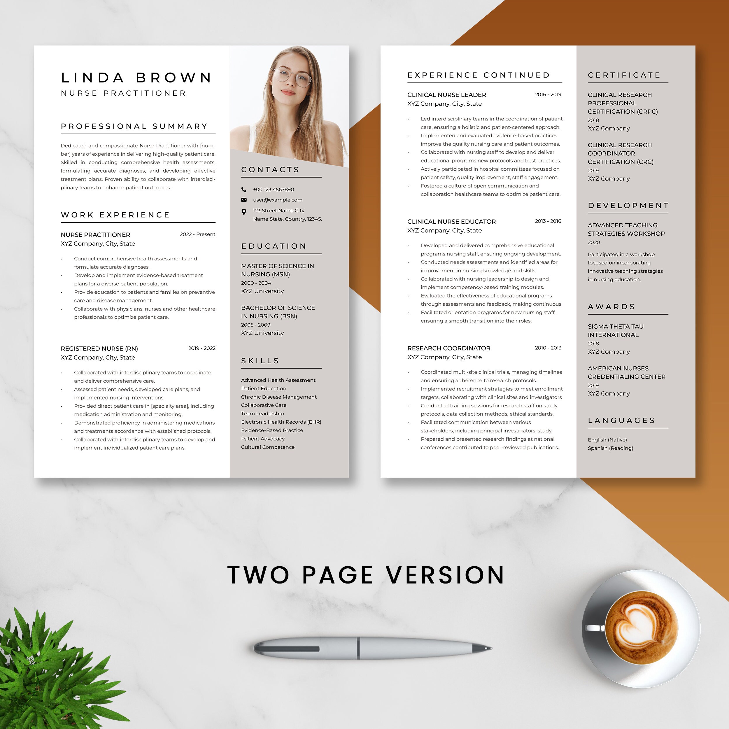 Nurse Practitioner Resume Template / Word Google Docs MAC Pages / 1