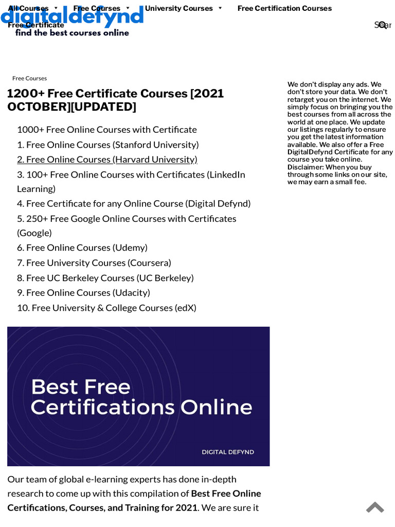 Best 545 Free Online Courses With Printable Certificates 2022