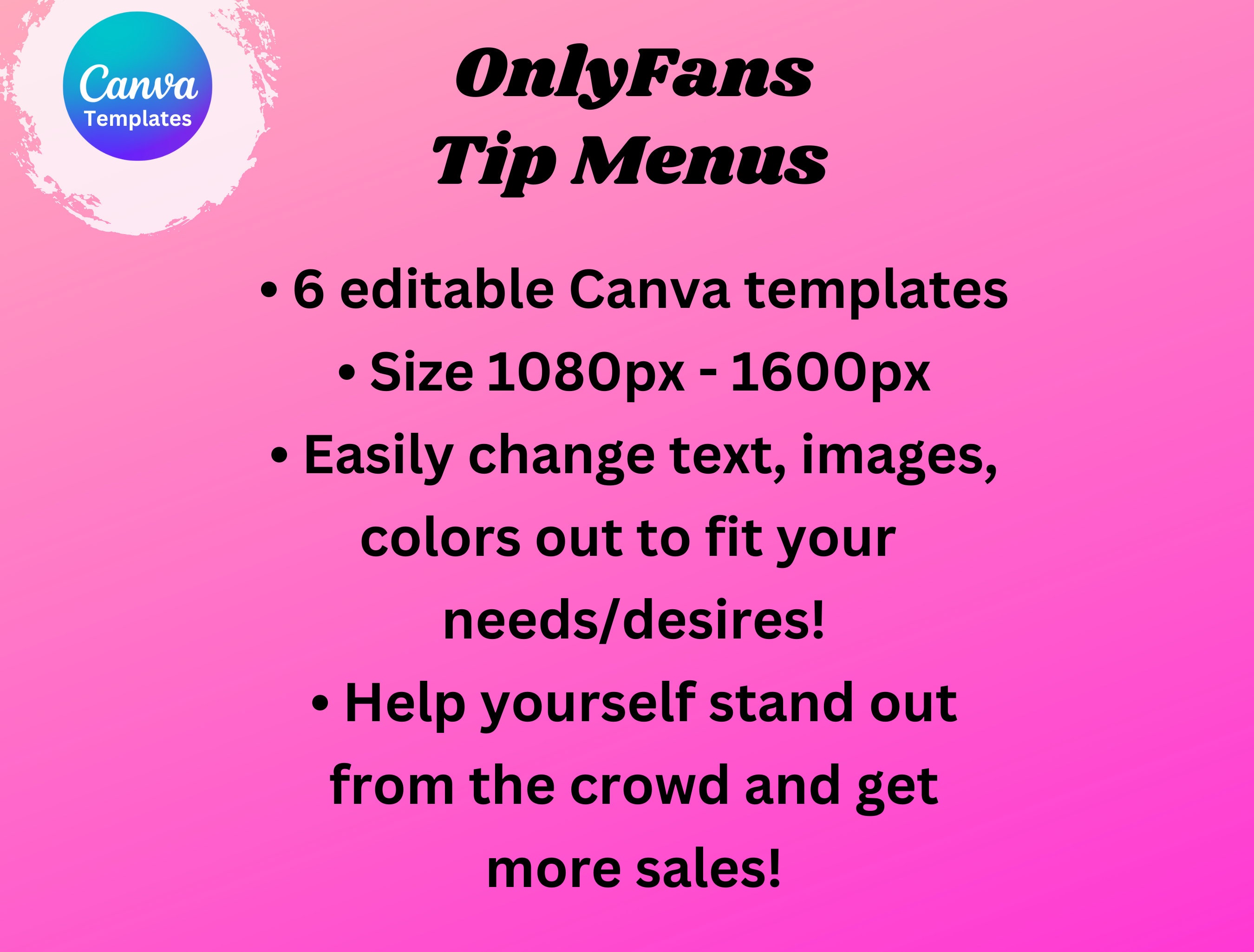 Onlyfans Tip Menu Onlyfans Graphics Six Editable Canva Templates