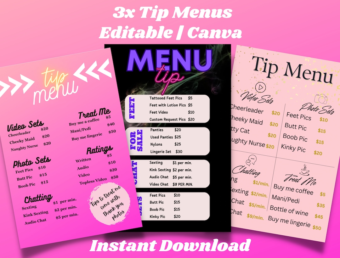 Easy to edit onlyfans tip menu template for fanslyetsy uk Artofit