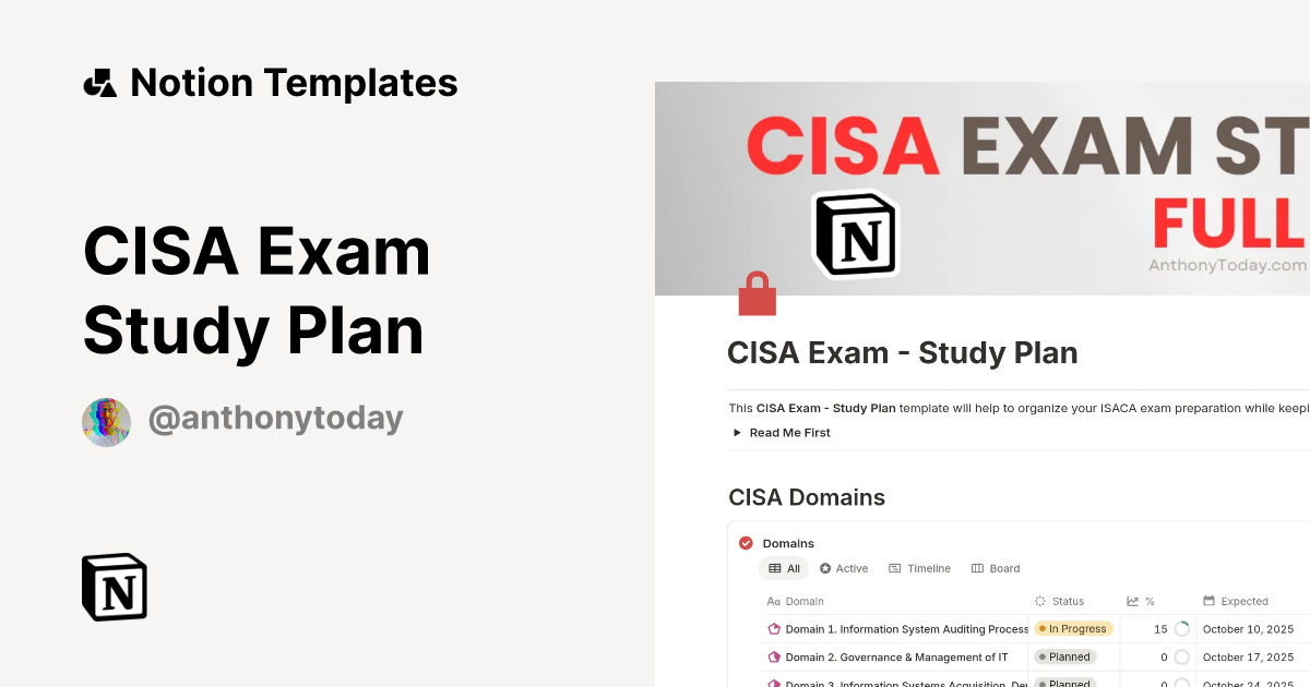 CISA Exam Study Plan Template by AnthonyToday Notion Marketplace