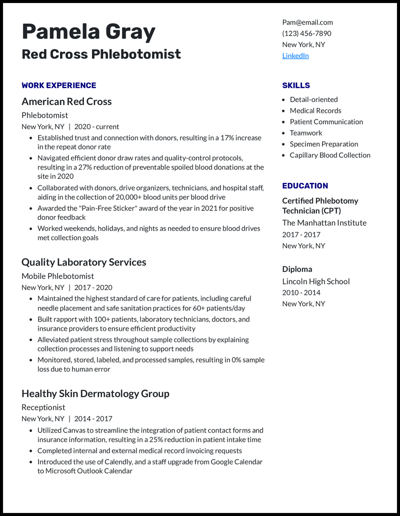 Phlebotomist Resume Examples and Templates for 2025 ResumeBuilder com