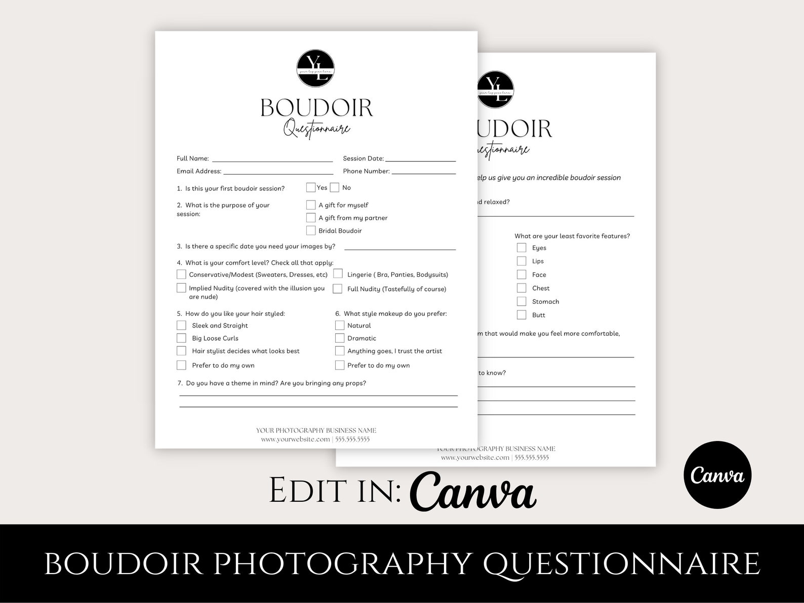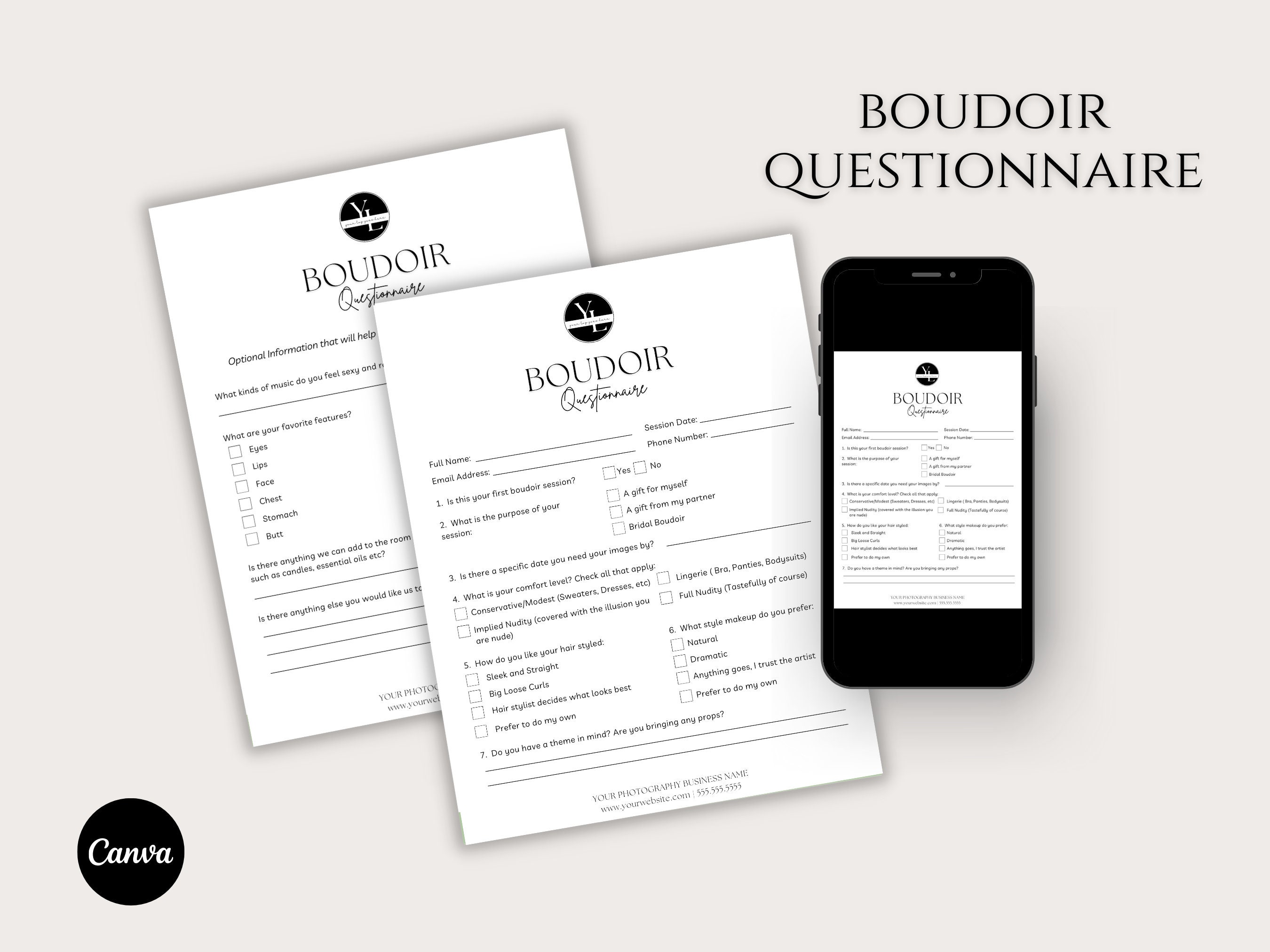 Boudoir Photography Questionnaire Template: Customizable Photographer