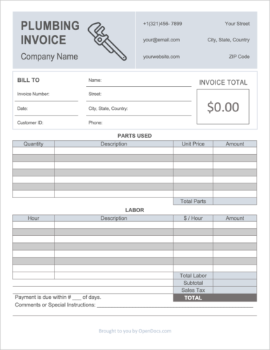 Plumbing Invoice Template Free Download word excel google docs and sheets