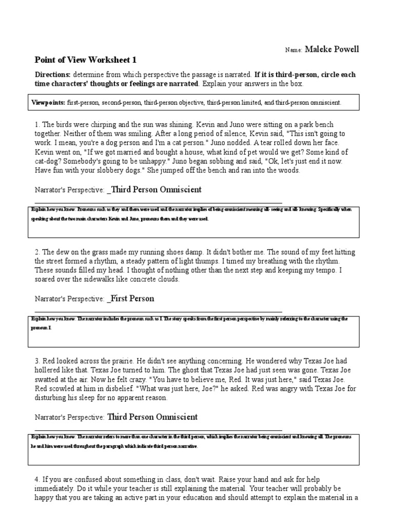 Mastering Perspective: The Power of Point of View Worksheets in Education