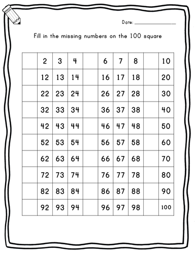 Educational 1 to 100 Counting Worksheet Missing Numbers Practice Etsy