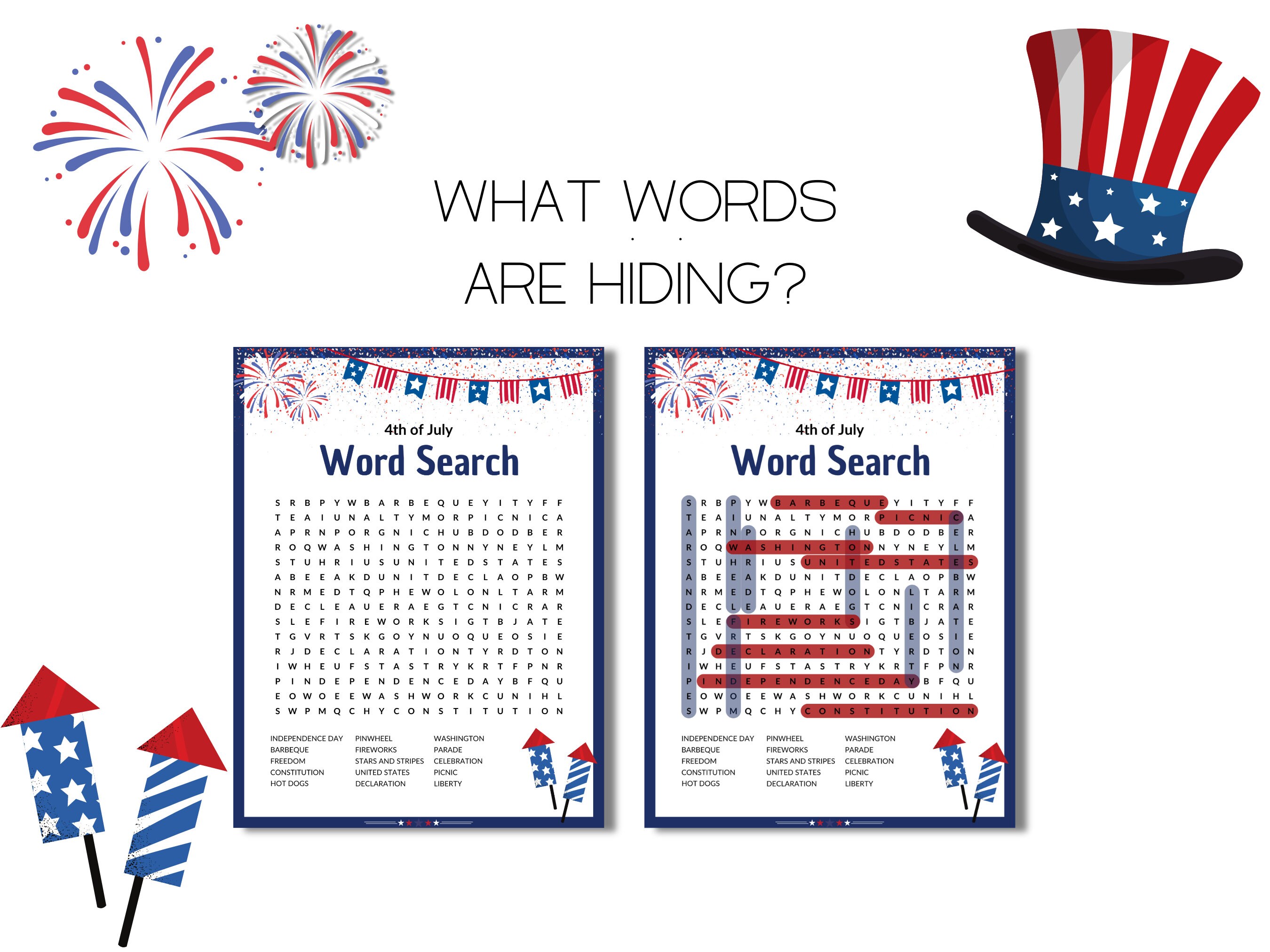 Fourth of July themed Word Searches • Beeloo Printable Crafts and