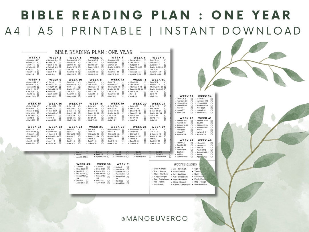 Bible Reading Plan Printable Bible Reading Plan Tracker Etsy