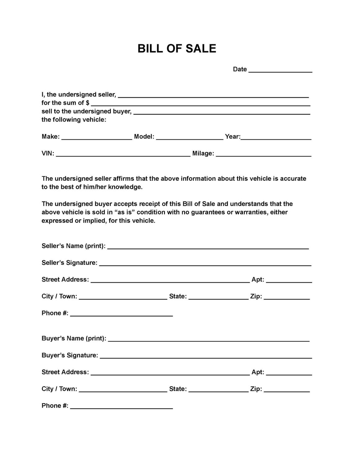 Free Printable Vehicle Bill Of Sale Form Printable Tax Form