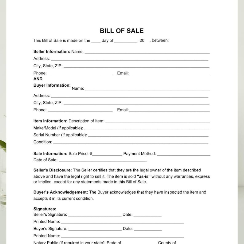 Free Printable Bill Of Sale Form Form (GENERIC)