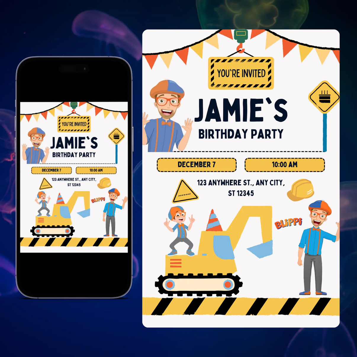 Blippi Birthday Invitation Template Free Send By Text Or Email Track