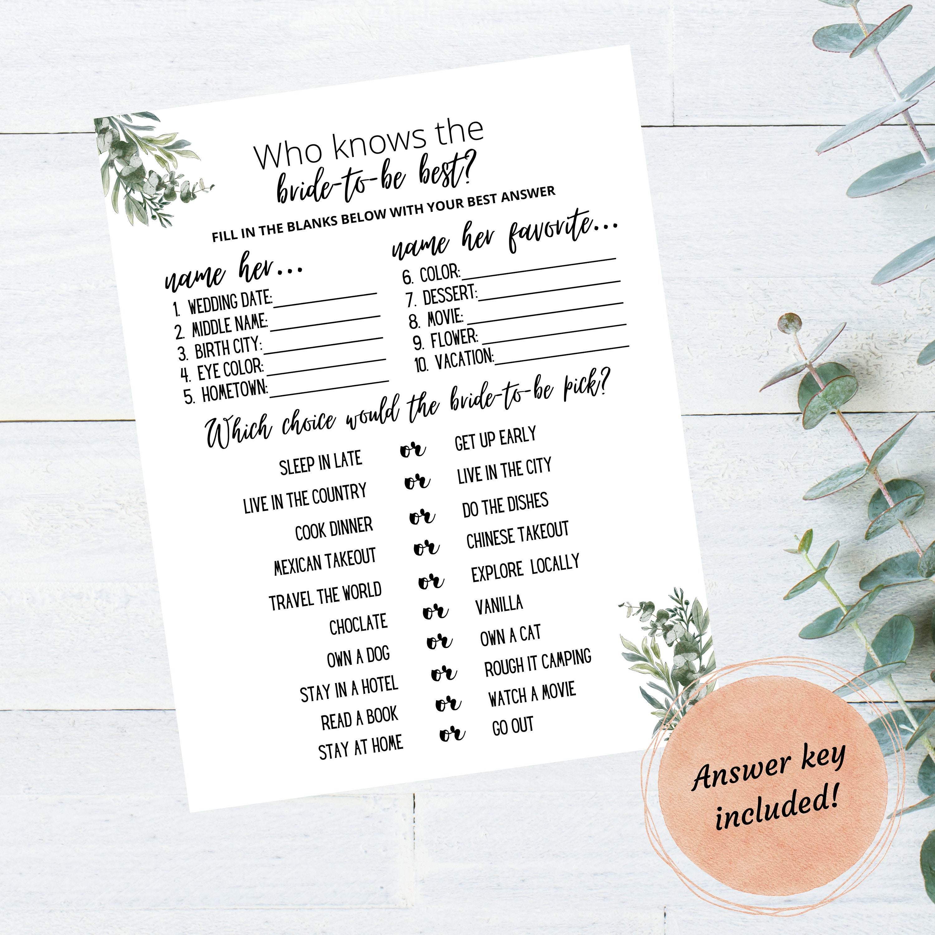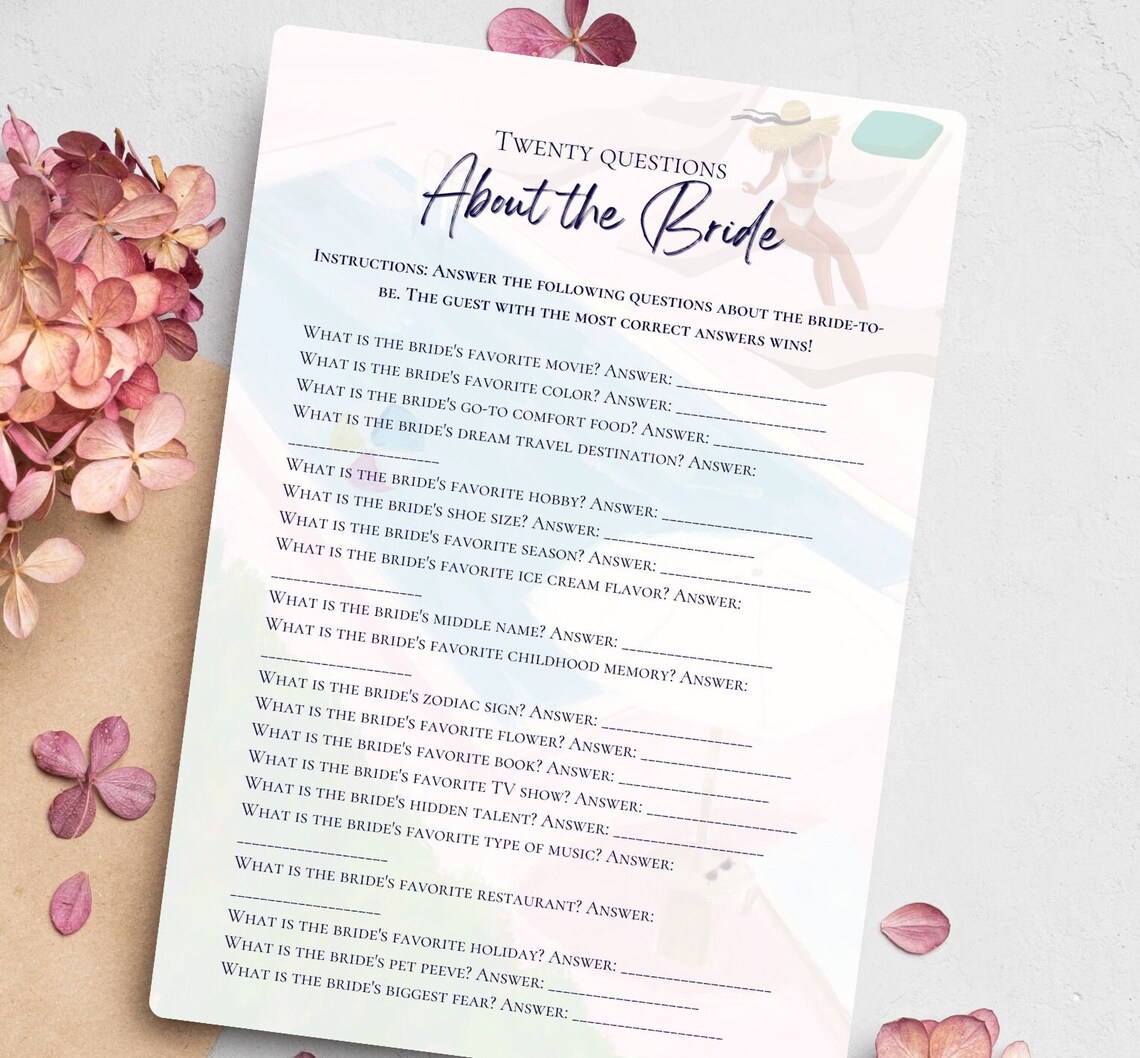 Bridal Shower Games Printable Answer Key Included Etsy