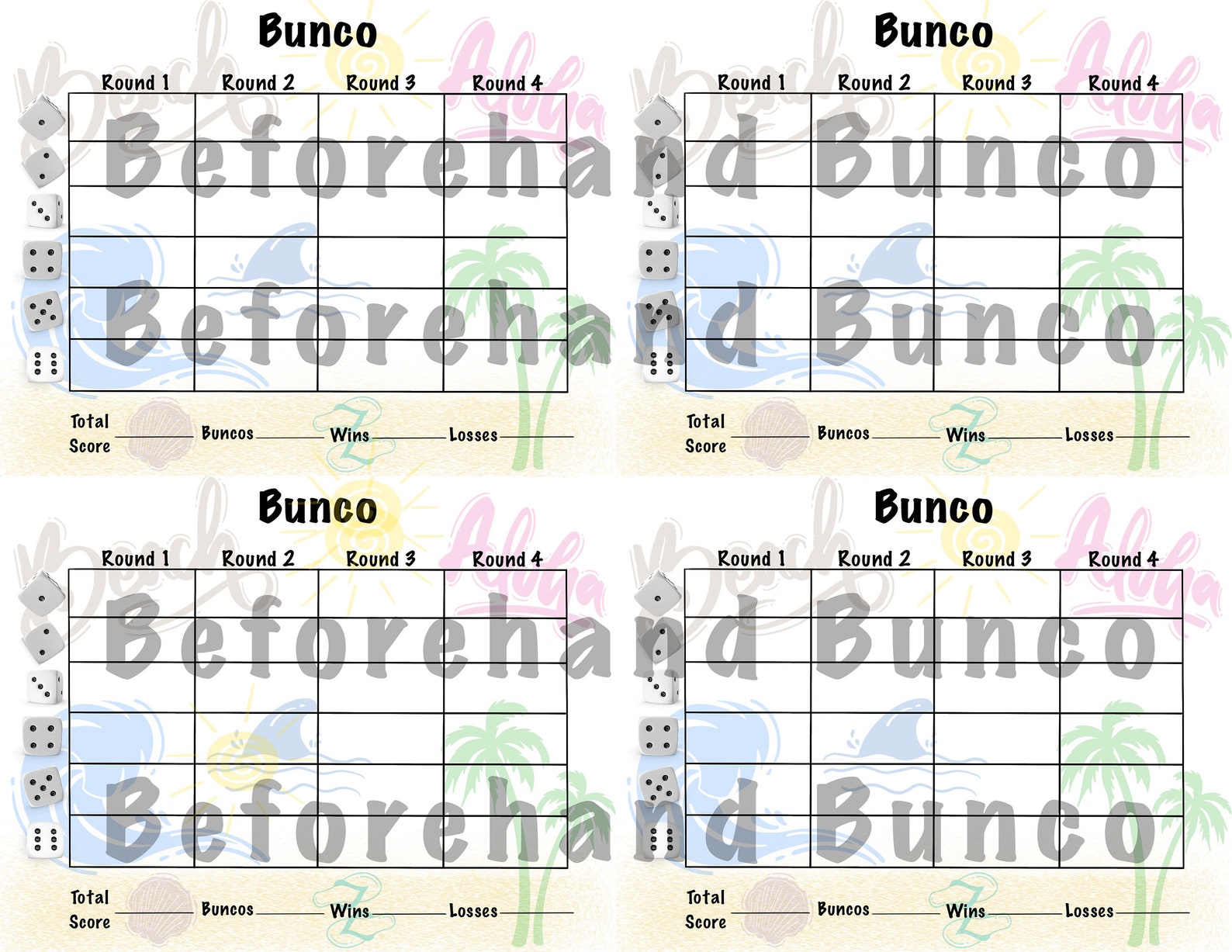 Bunco Score Sheets 4 in 1 Printable Bunco Cards Printable File