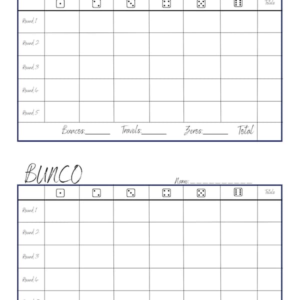 BUNCO Score Sheet BUNCO Score Card Etsy