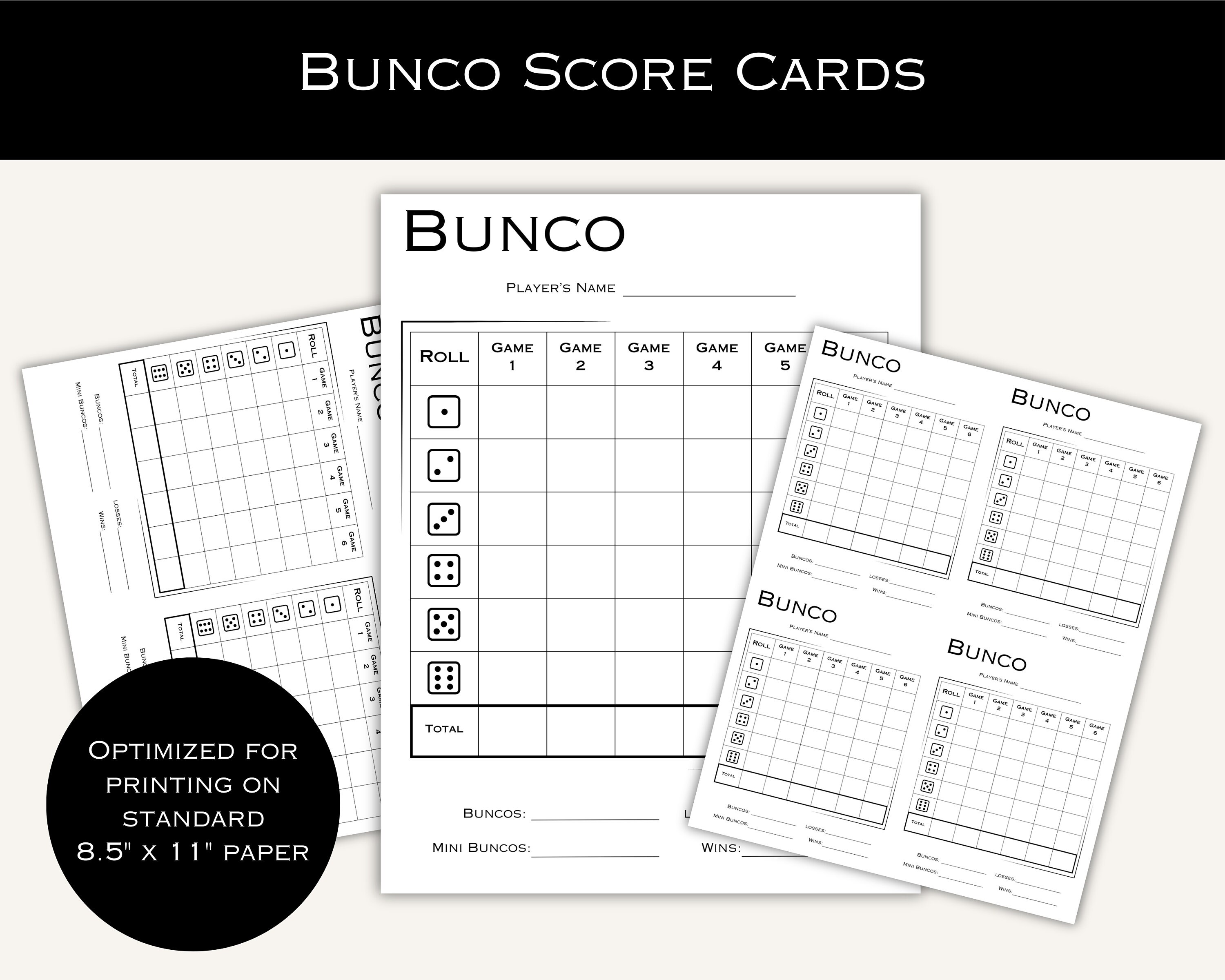 Minimalist BUNCO Printable Bundle Score Cards Tally Sheets Table