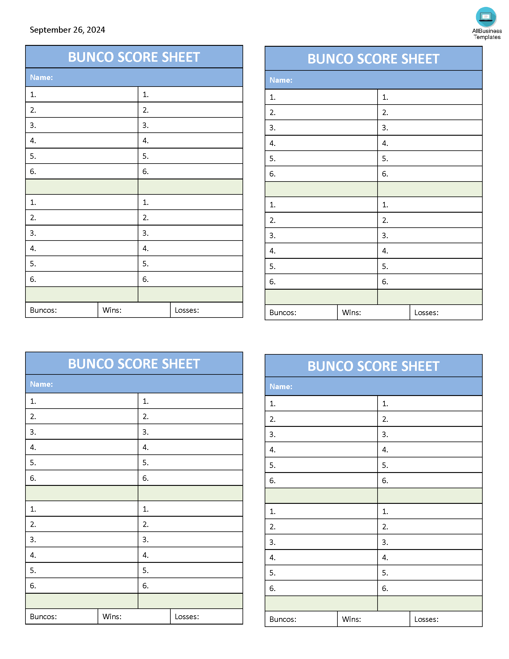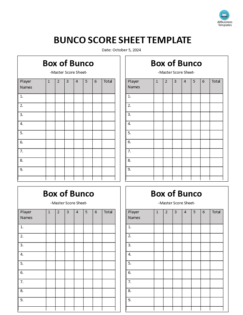 Bunco Score Sheet Templates at allbusinesstemplates com