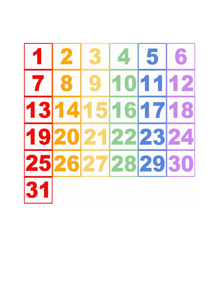 Printable Calendar Numbers 1 31 79852 Jpg PDF