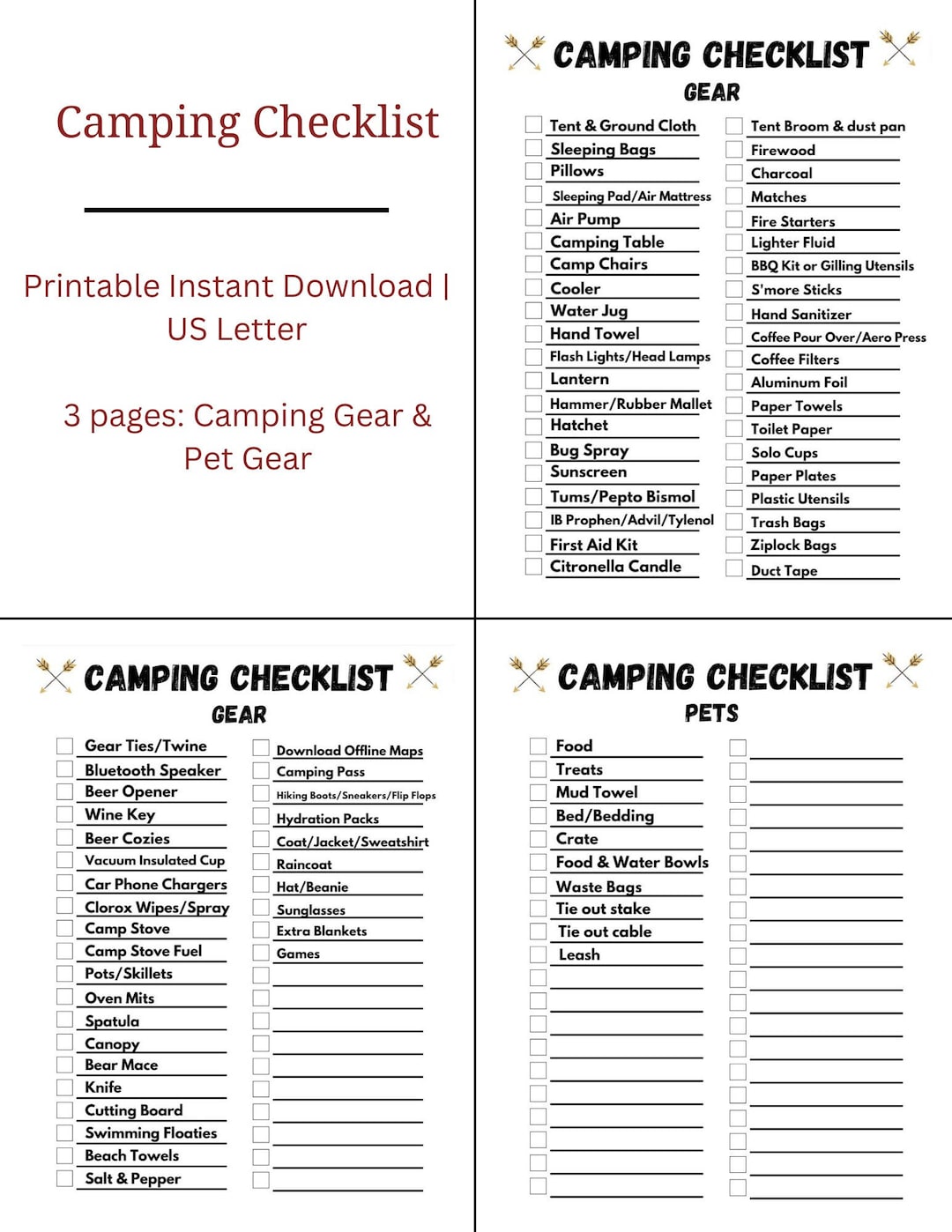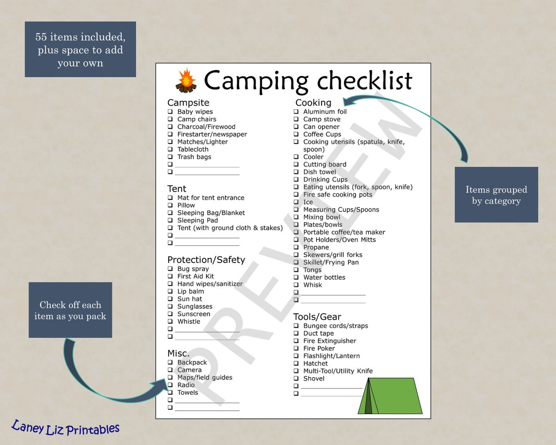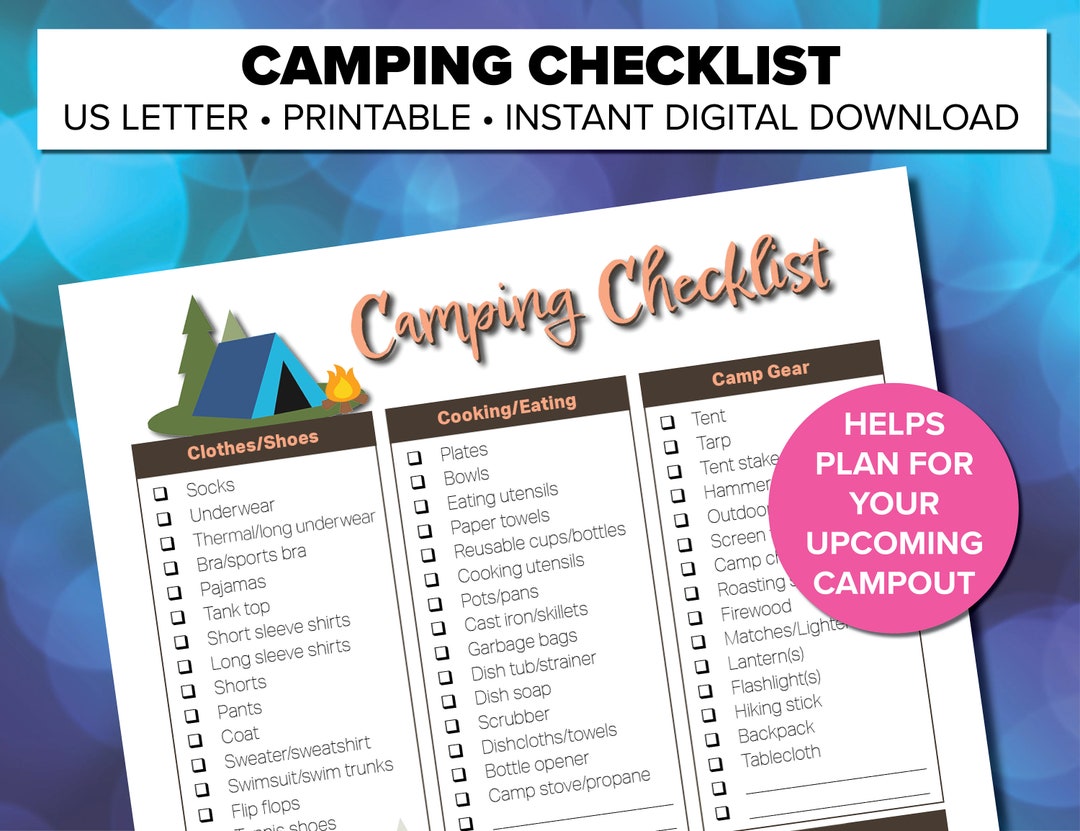 Camping Checklist Printable Etsy