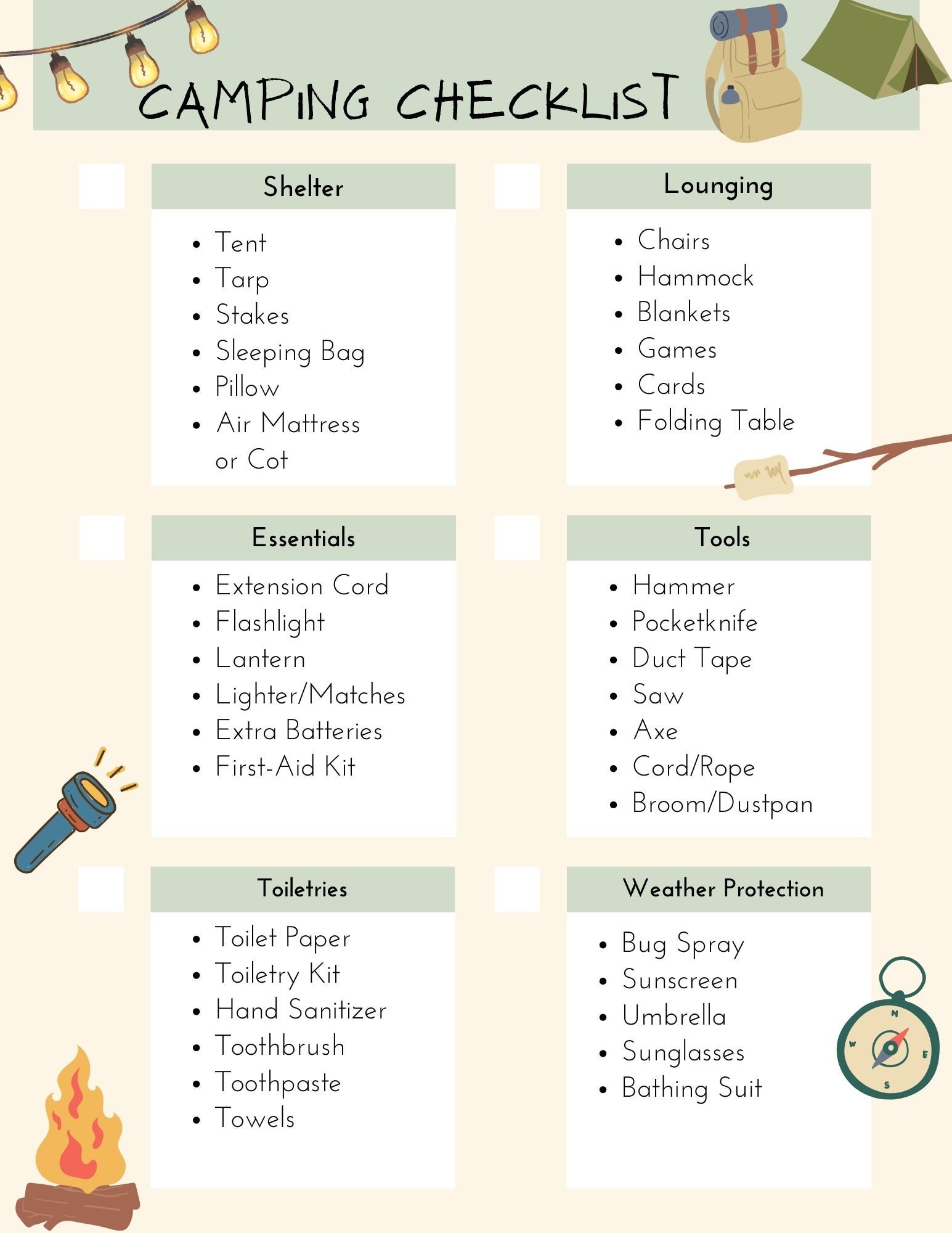 Free Printable Camping Checklist