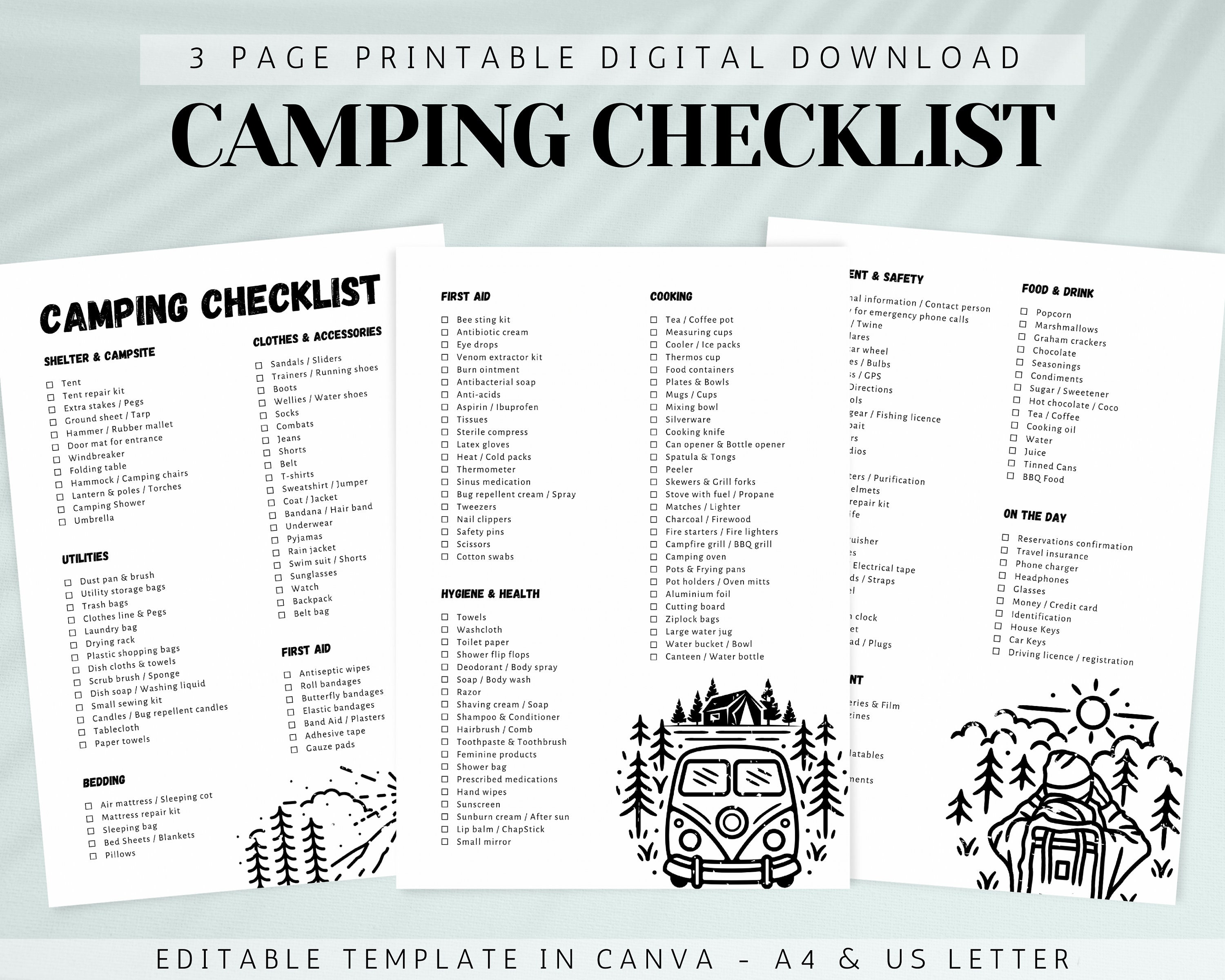 EDITABLE Camping Checklist Printable Travel Check List Camp Planner