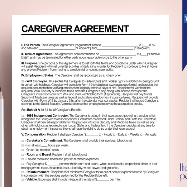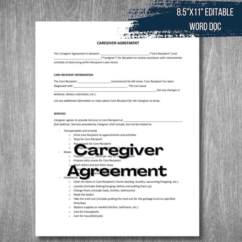 Personal Caregiver Agreement Contract Form Editable Word Doc Digital