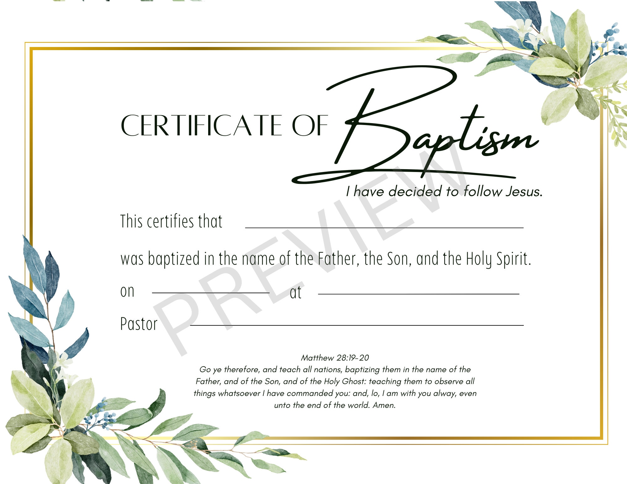 Printable Baptism Certificate Template KJV Instant Digital Download