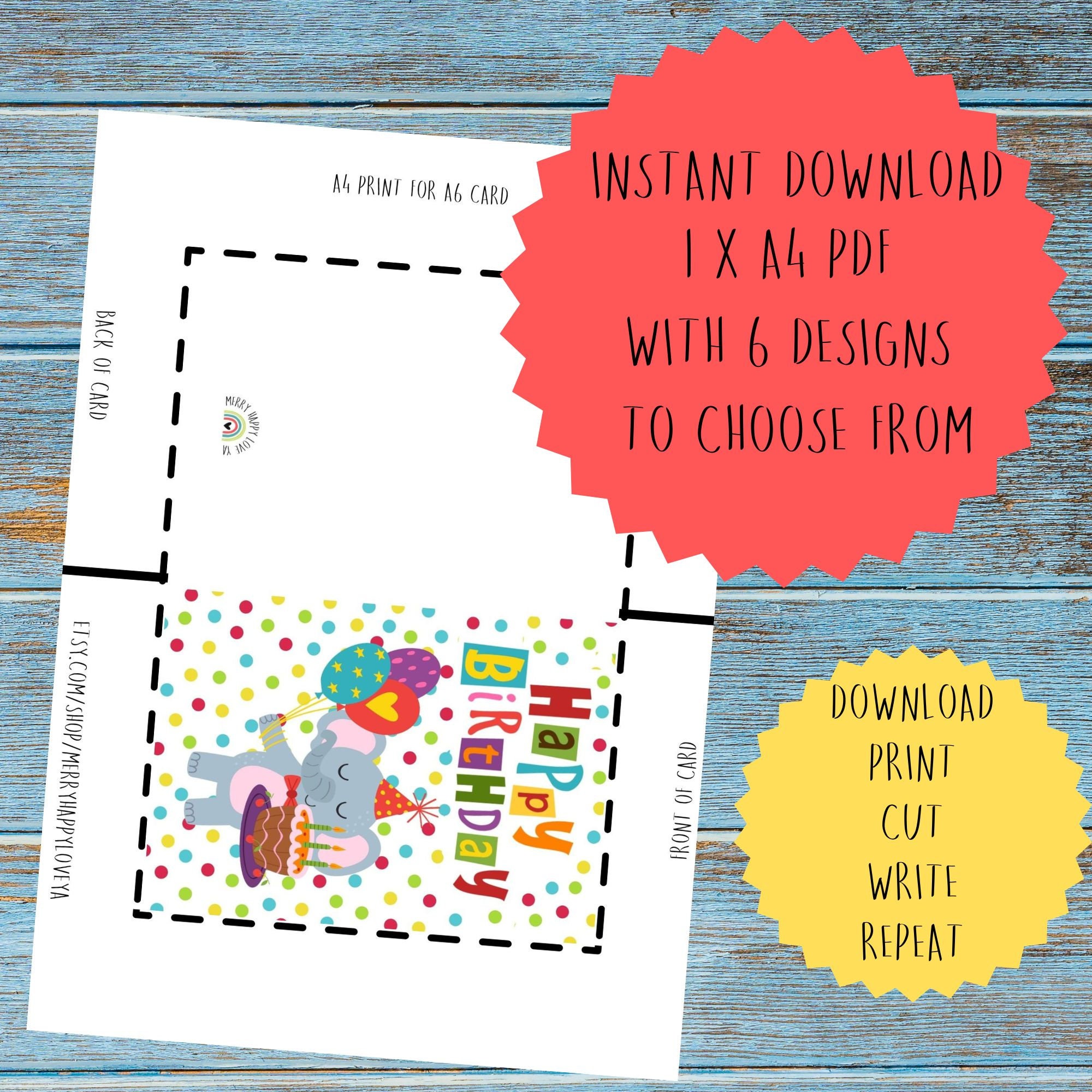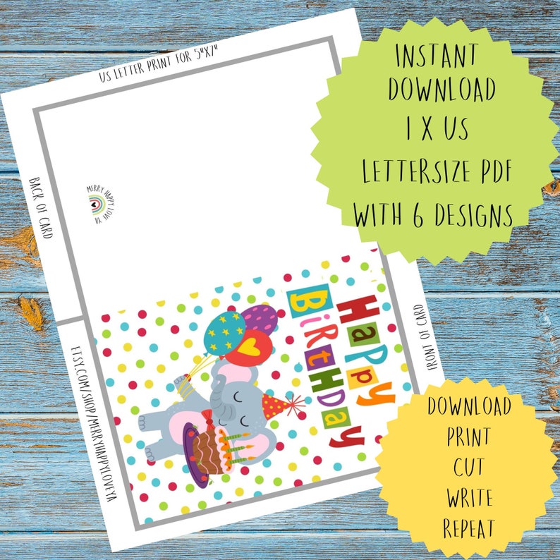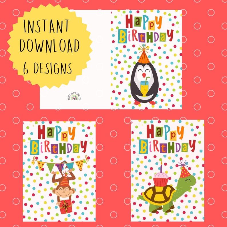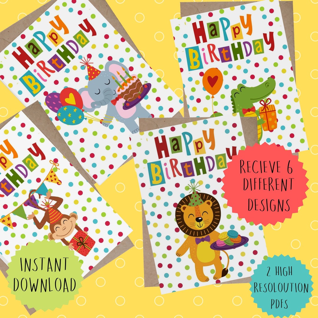 Printable Childrens Birthday Cards Bundle Set of 6 Digital Etsy