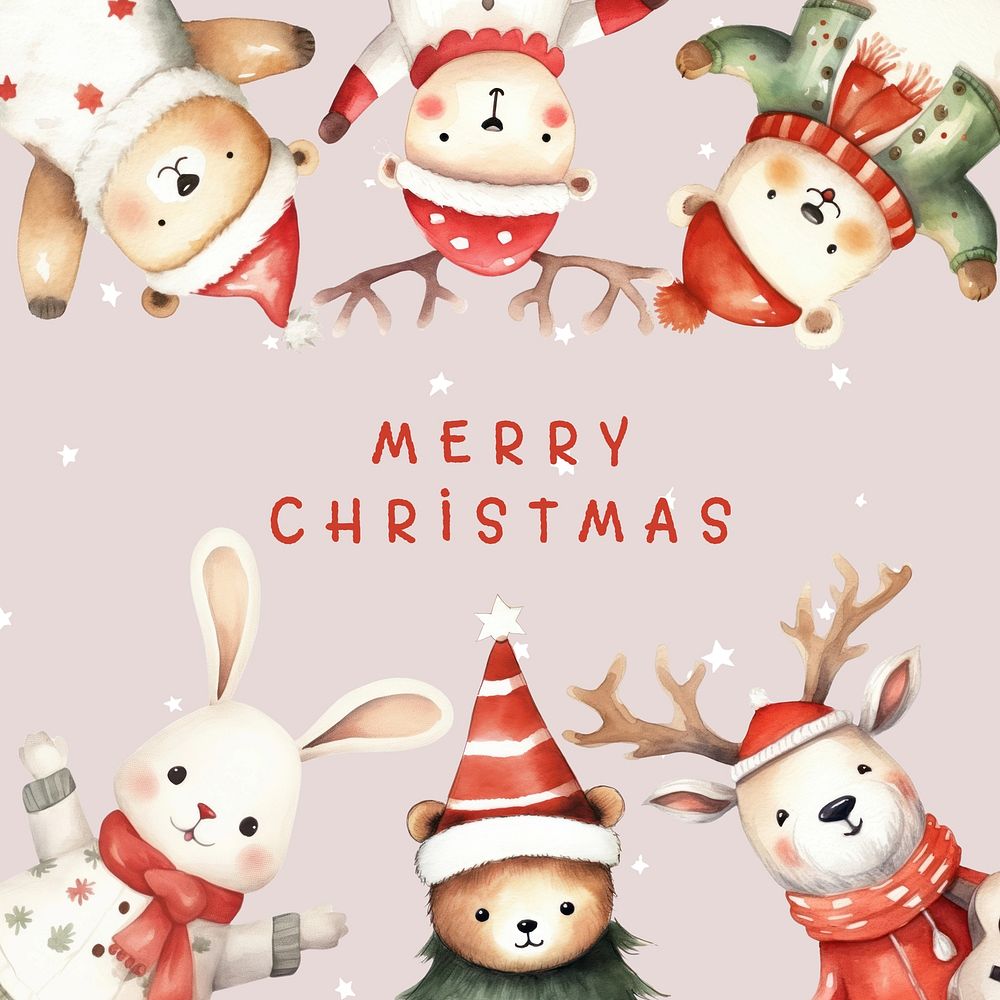 Cute Animals in Christmas Attire Enjoying Festive Season in Snowy