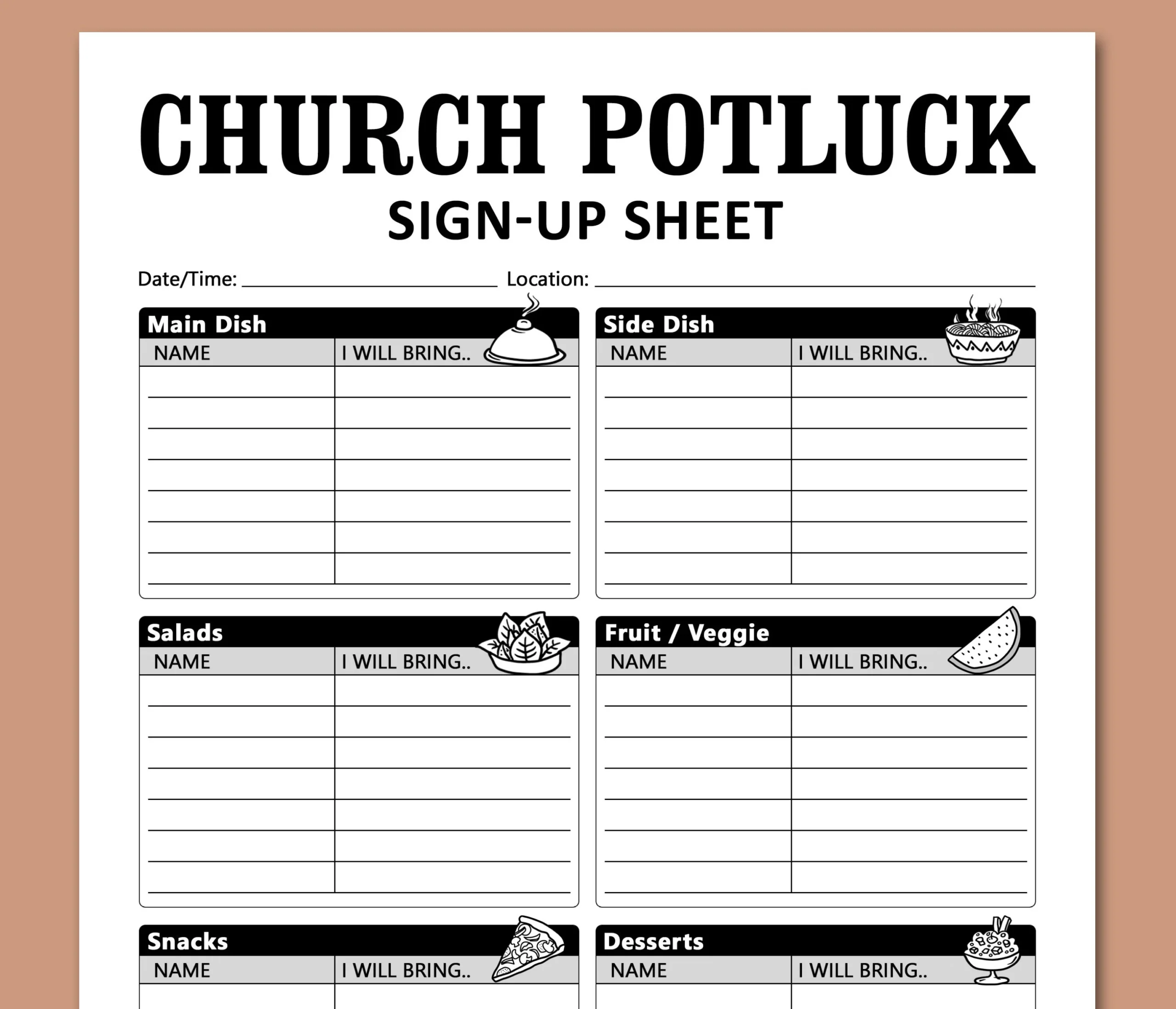 Free Church Potluck Signup Printable Sheet CreativePrintables Free