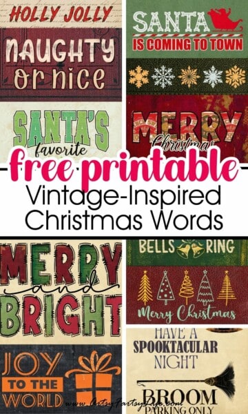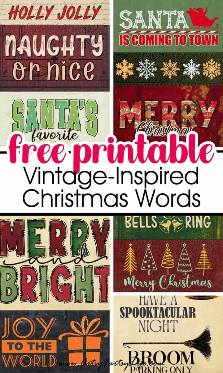 Vintage Inspired Christmas Words Free Printable Set for Holiday
