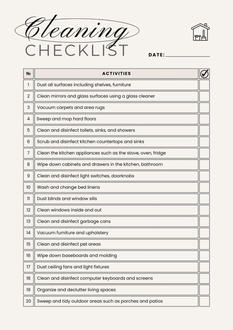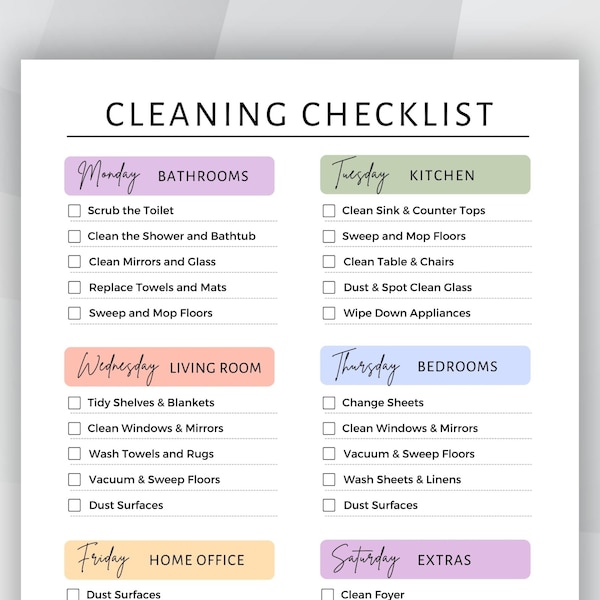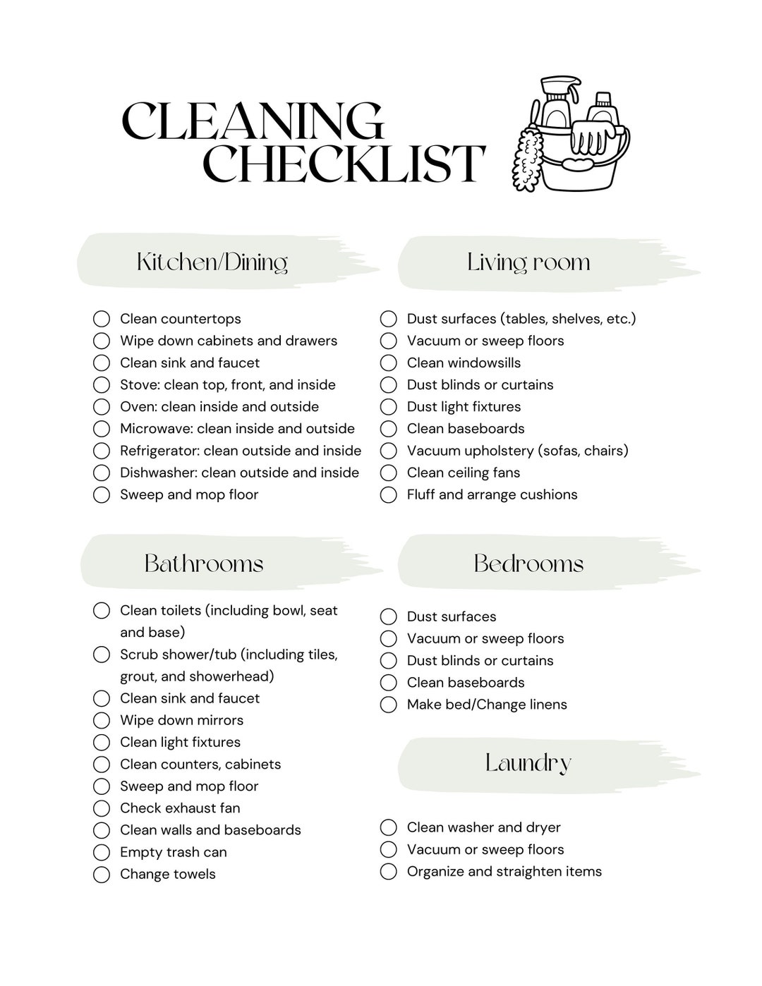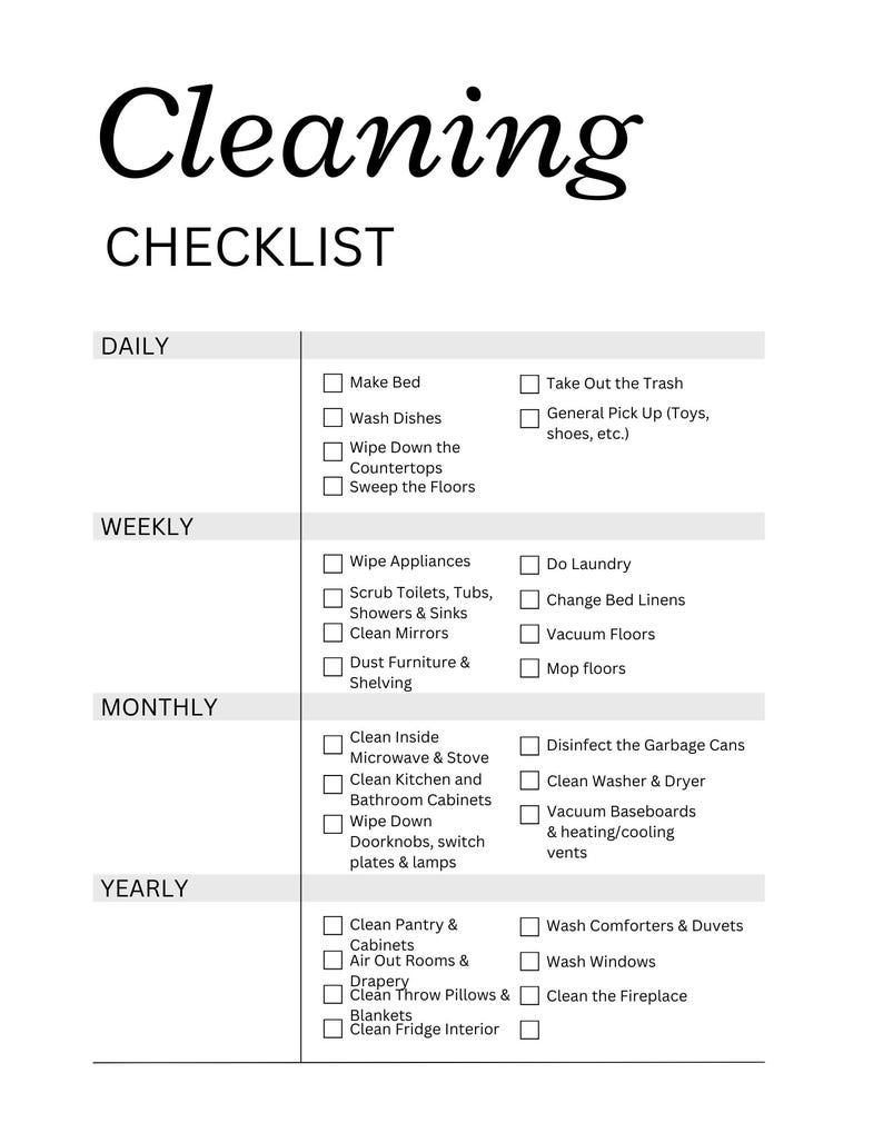 Printable Cleaning Checklist Instant Download PDF Etsy