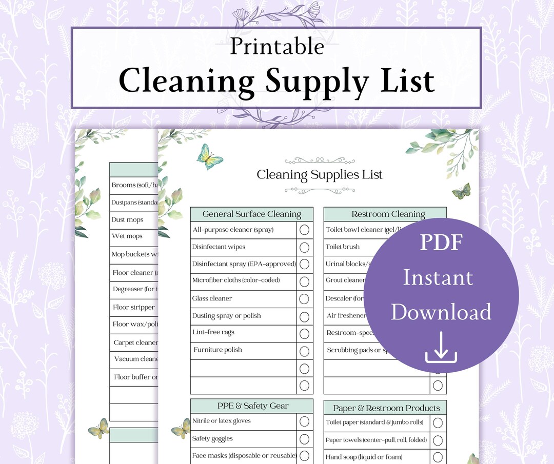 Cleaning Supply List Printable PDF Cleaner Inventory Management