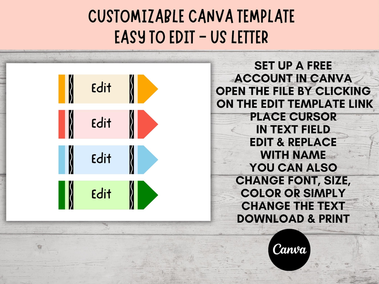 Printable Crayon Name Tags Customizable Editable Stationery Back to