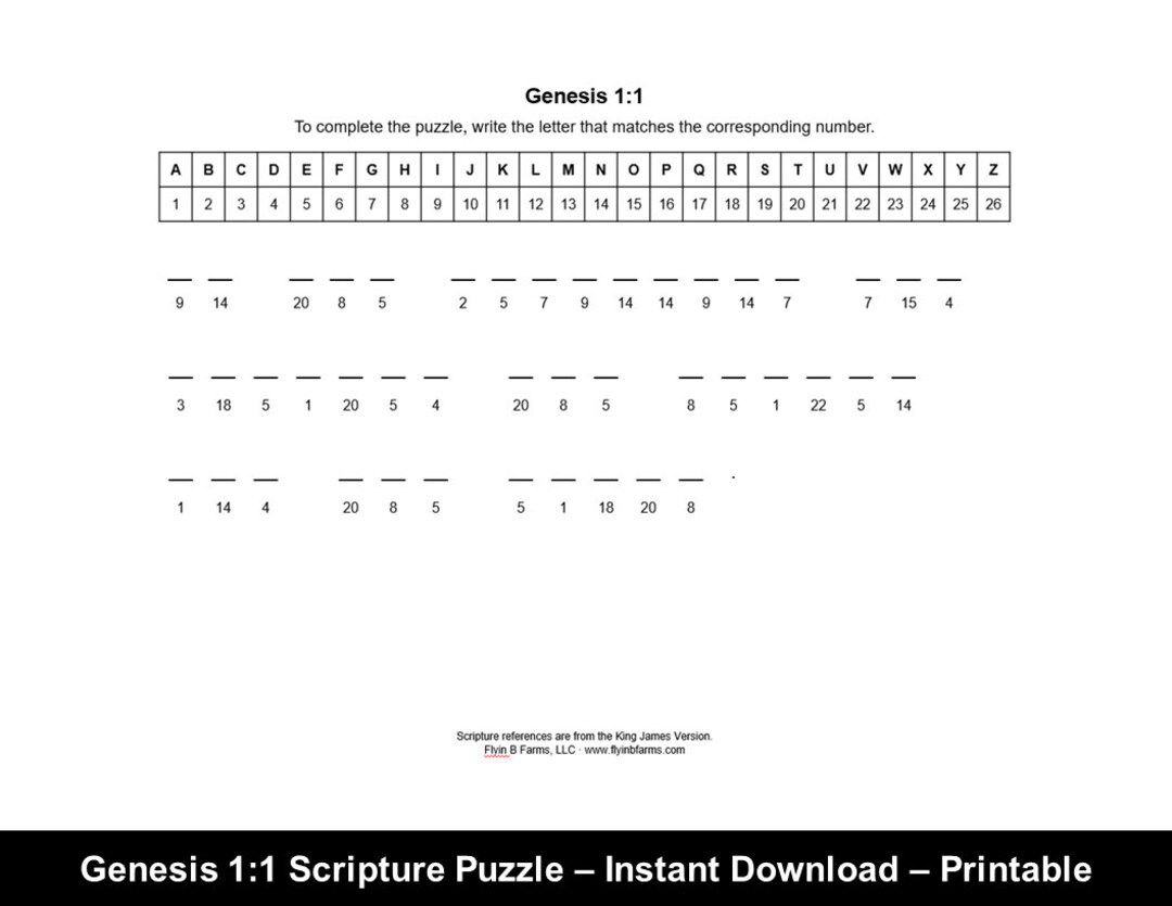 Genesis 1:1 Printable Scripture Puzzle Bible Verse Activity Etsy