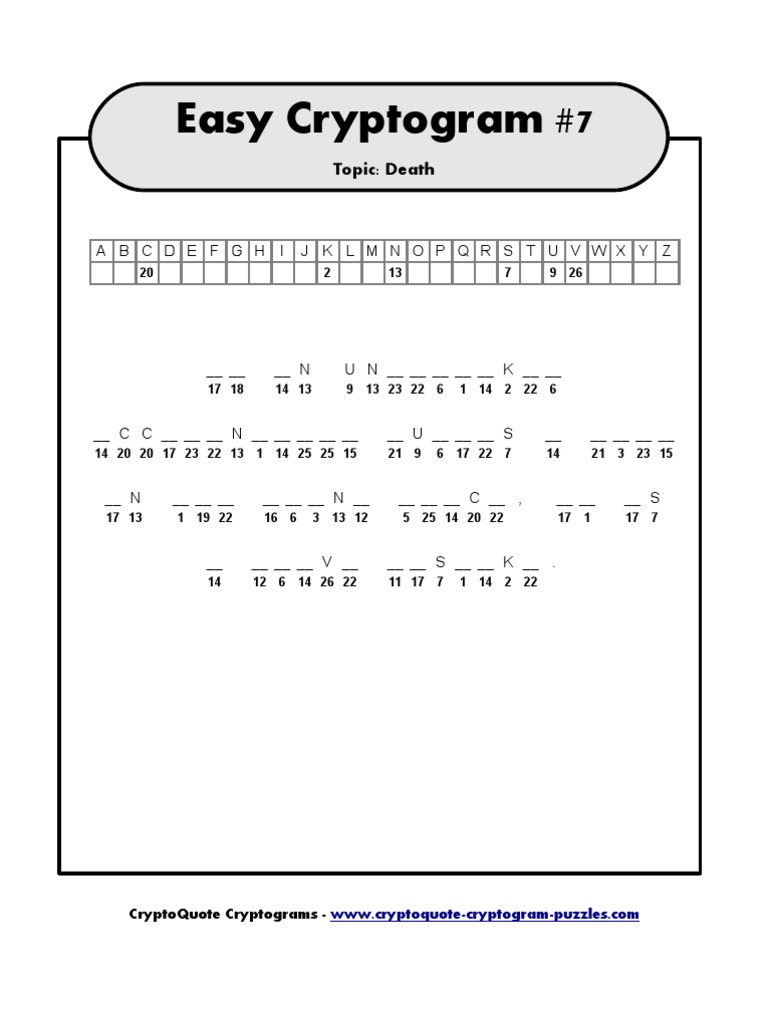 Easy Cryptogram #7: Topic: Death PDF